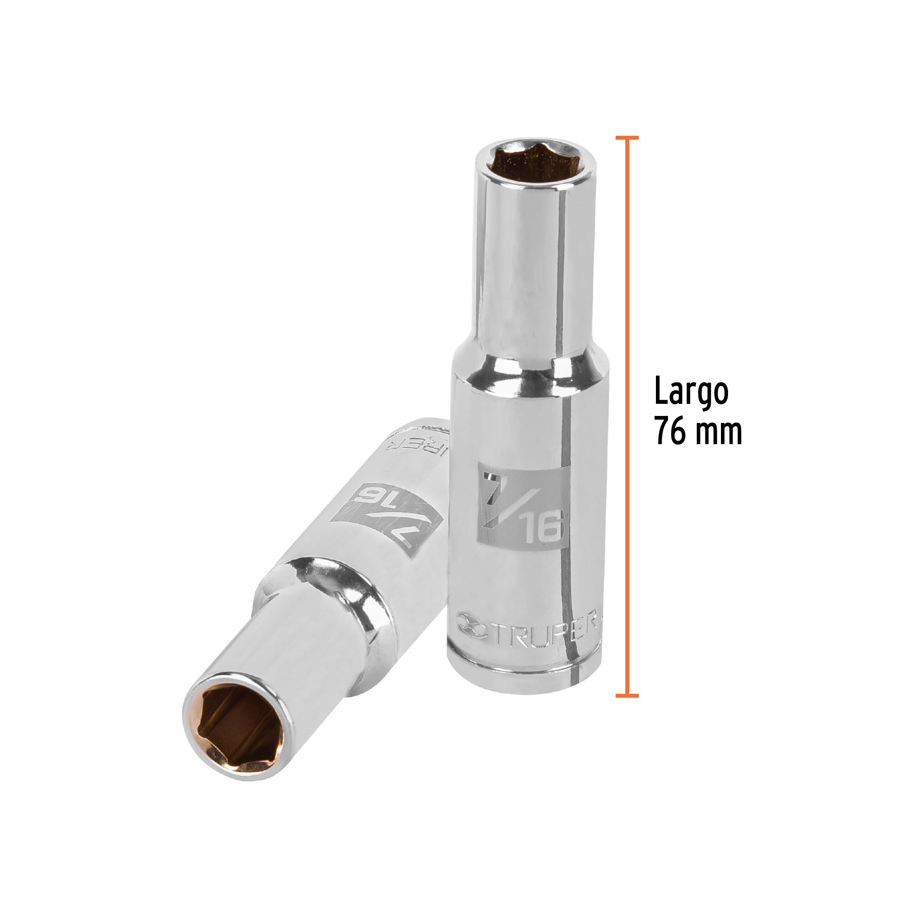 Dado largo de 7/16′ 12 puntas, cuadro 1/2′, Truper