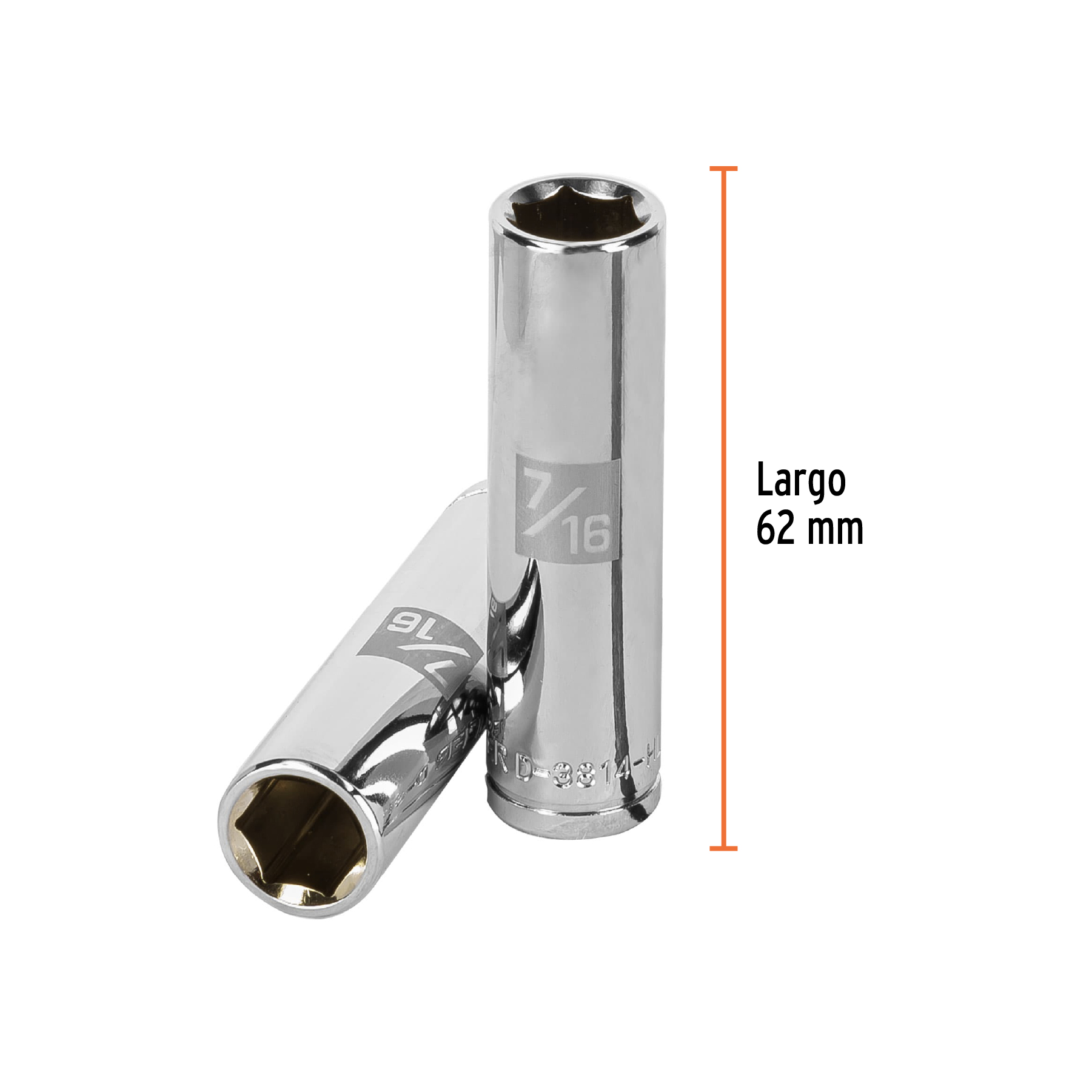 Dado largo de 7/16′, 6 puntas, cuadro 3/8′, Truper