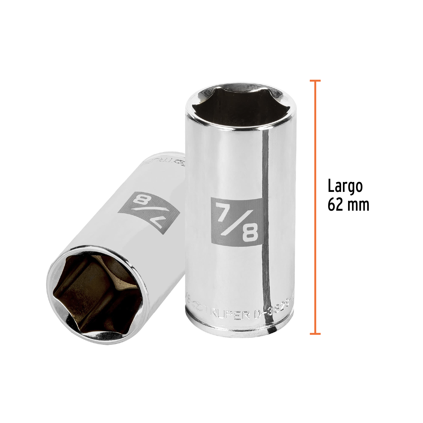 Dado largo de 7/8′, 6 puntas, cuadro 3/8′, Truper