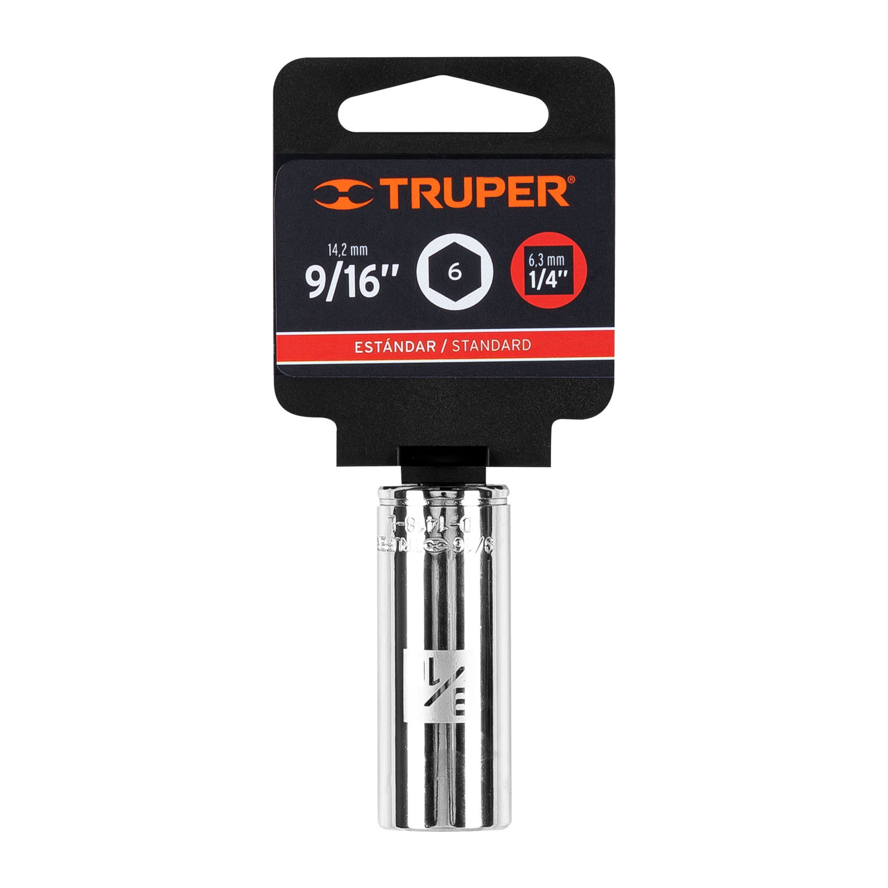 Dado largo de 9/16′, 6 puntas, cuadro 1/4′, Truper