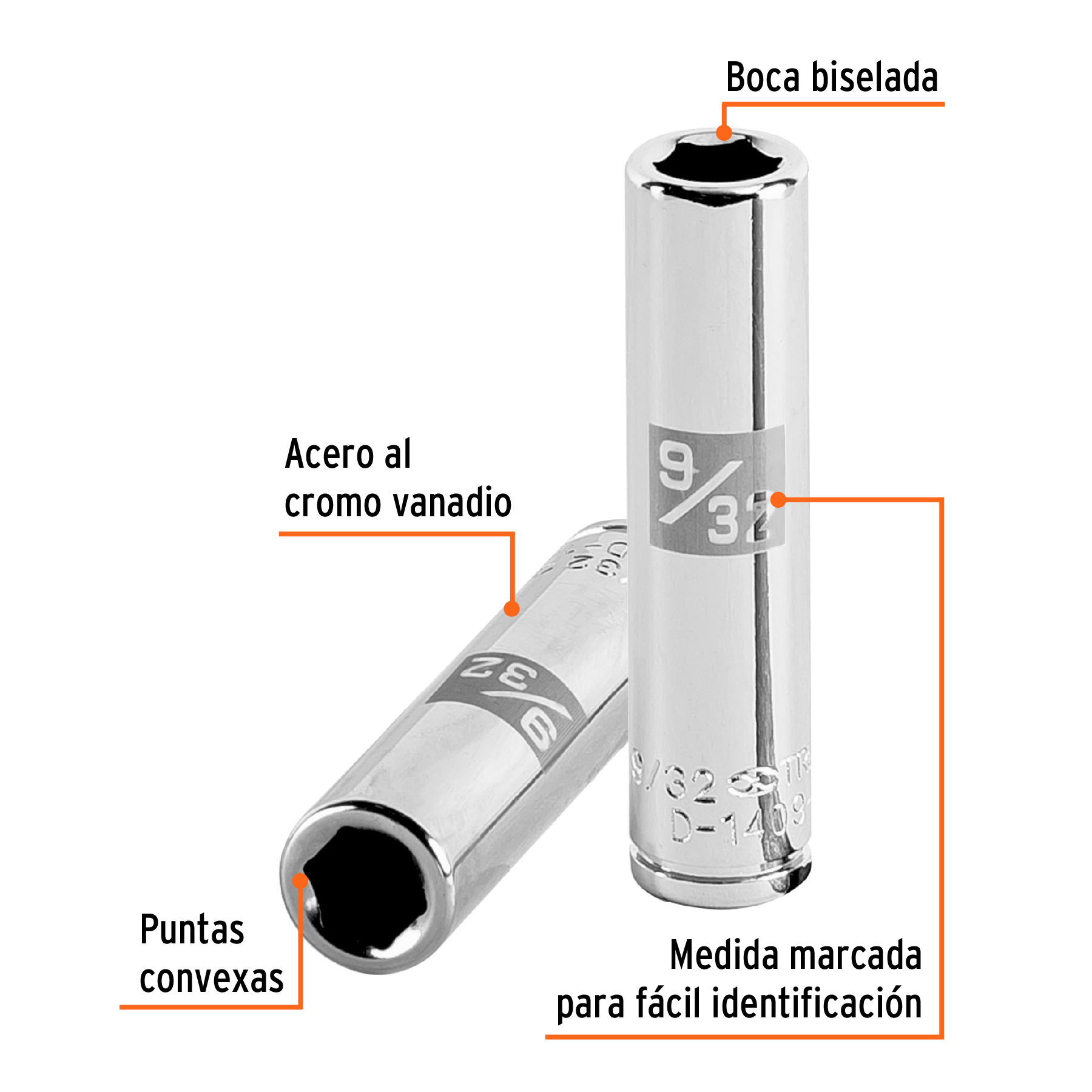 Dado largo de 9/32′, 6 puntas, cuadro 1/4′, Truper