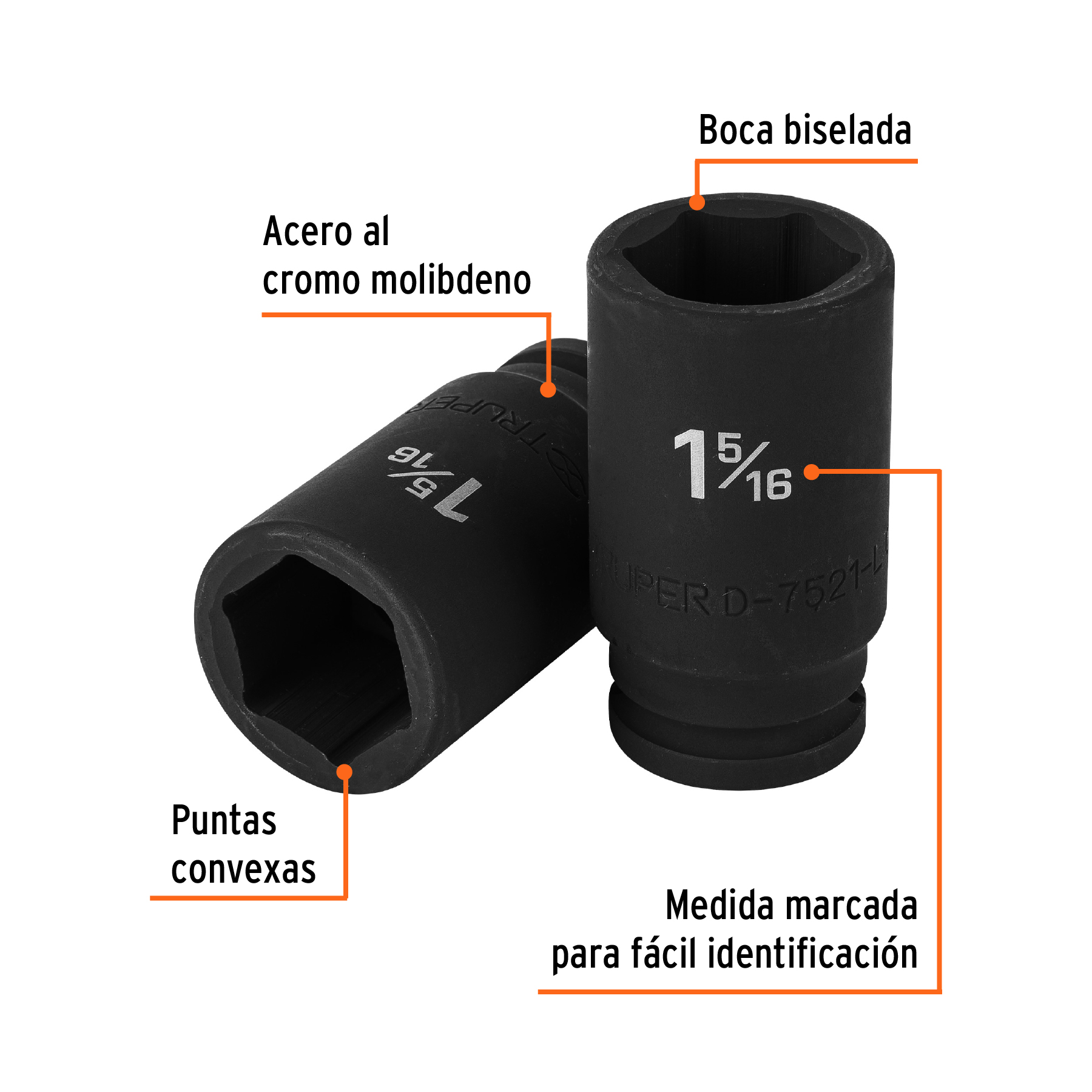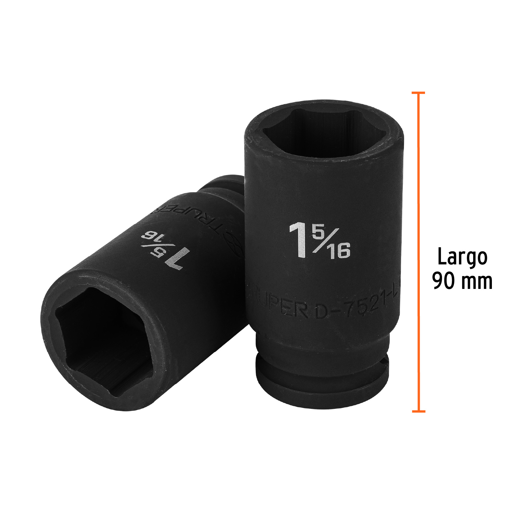 Dado largo de impacto de 1-5/16′, 6 puntas, cuadro 3/4′