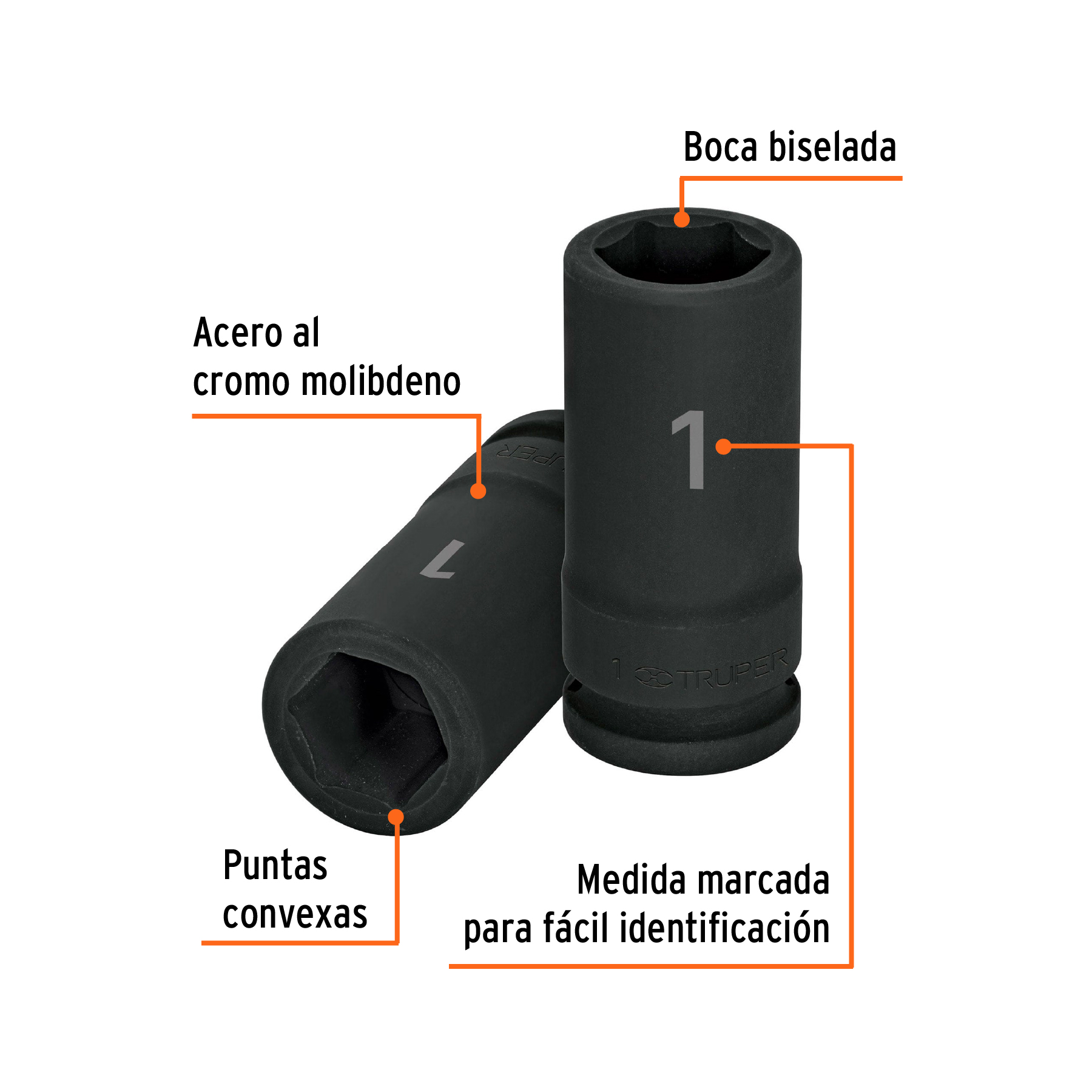 Dado largo de impacto de 1′, 6 puntas, cuadro 3/4′, Truper