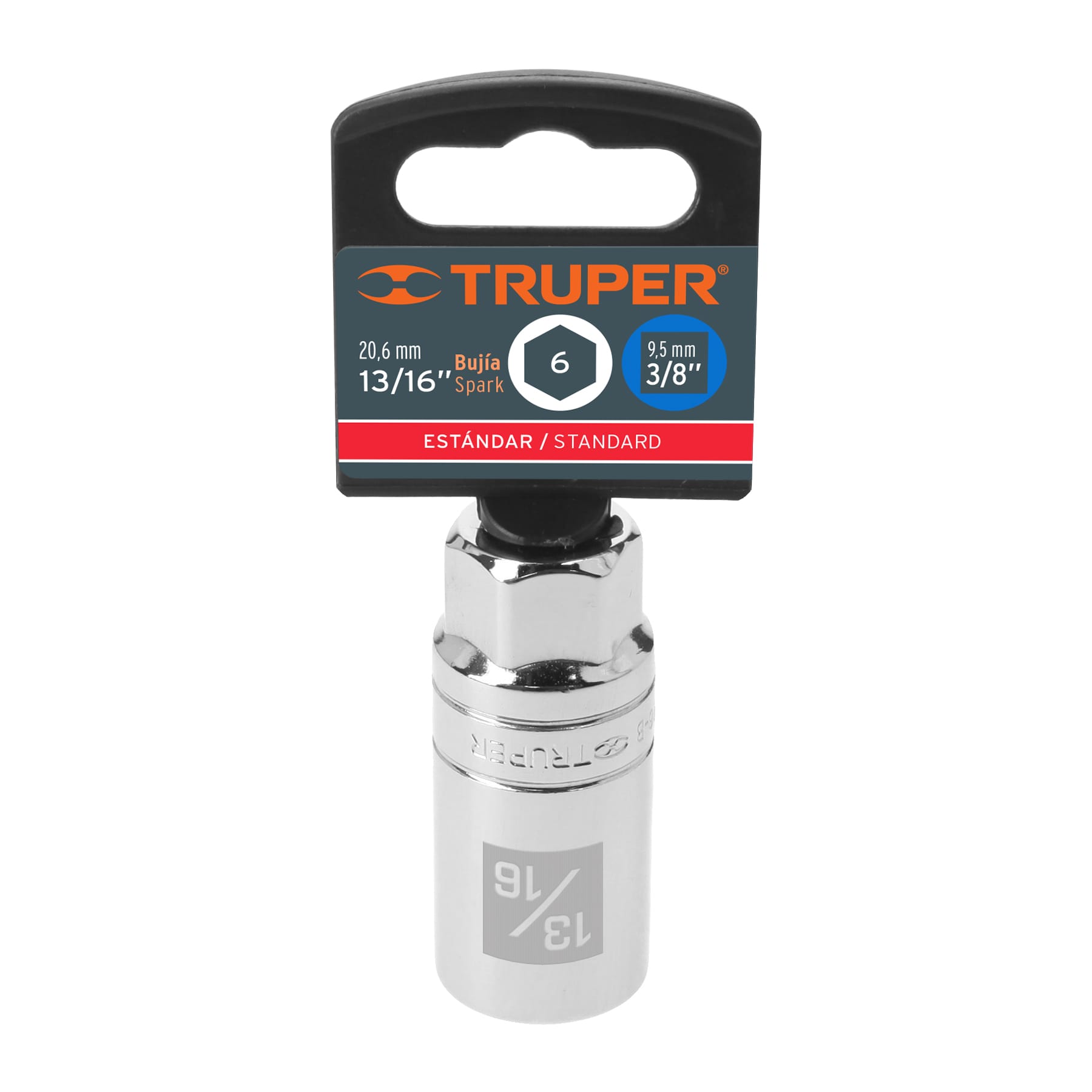 Dado para bujías de 13/16′, 6 puntas, cuadro 3/8′, Truper