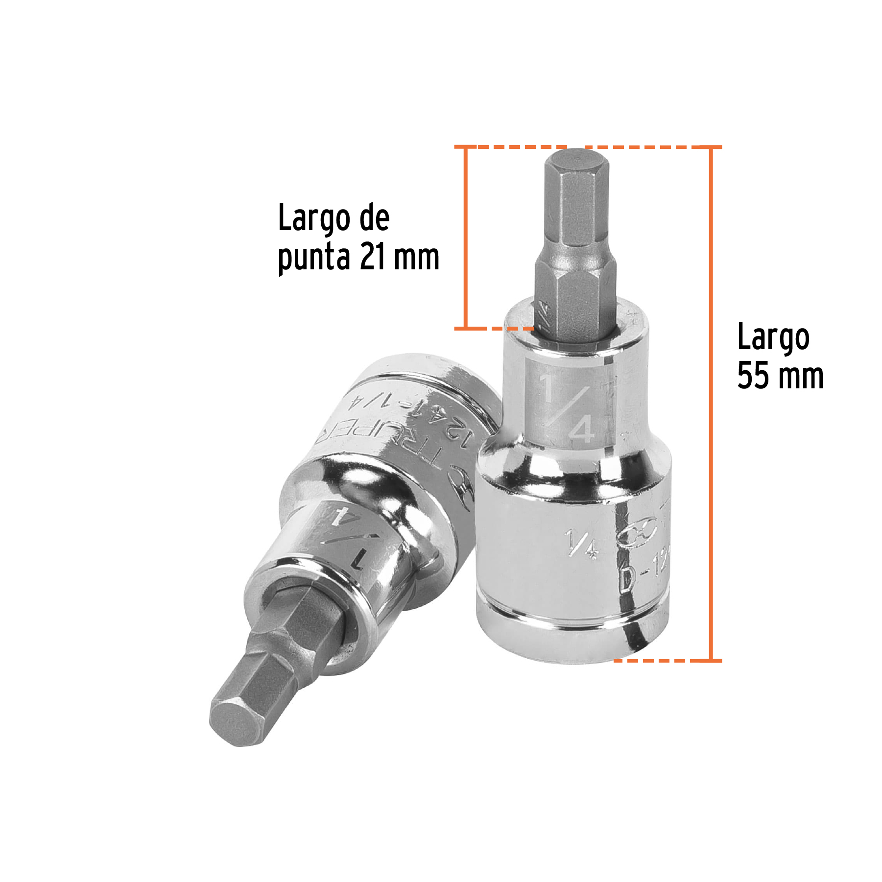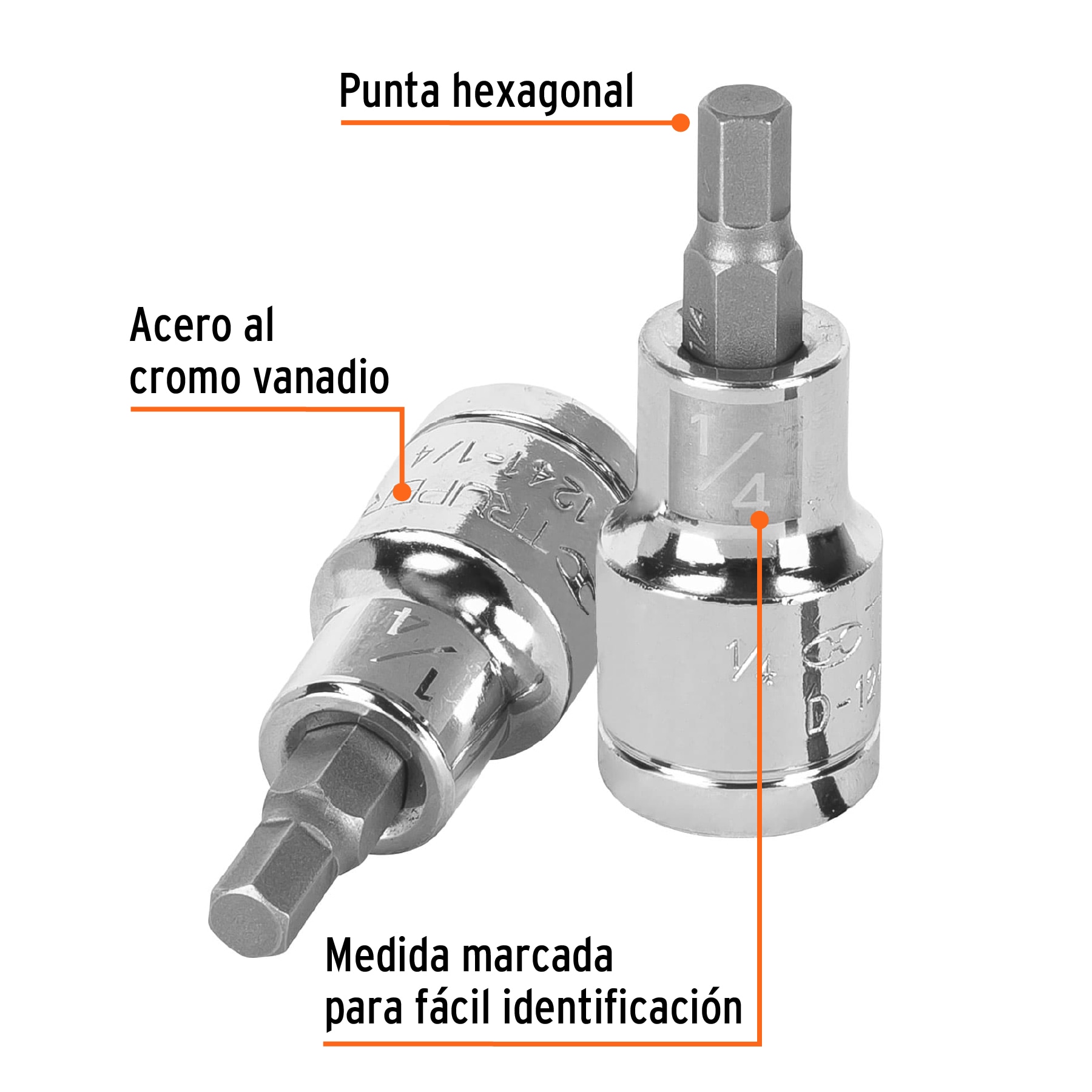 Dado punta hexagonal de 1/4′, cuadro 1/2′, Truper