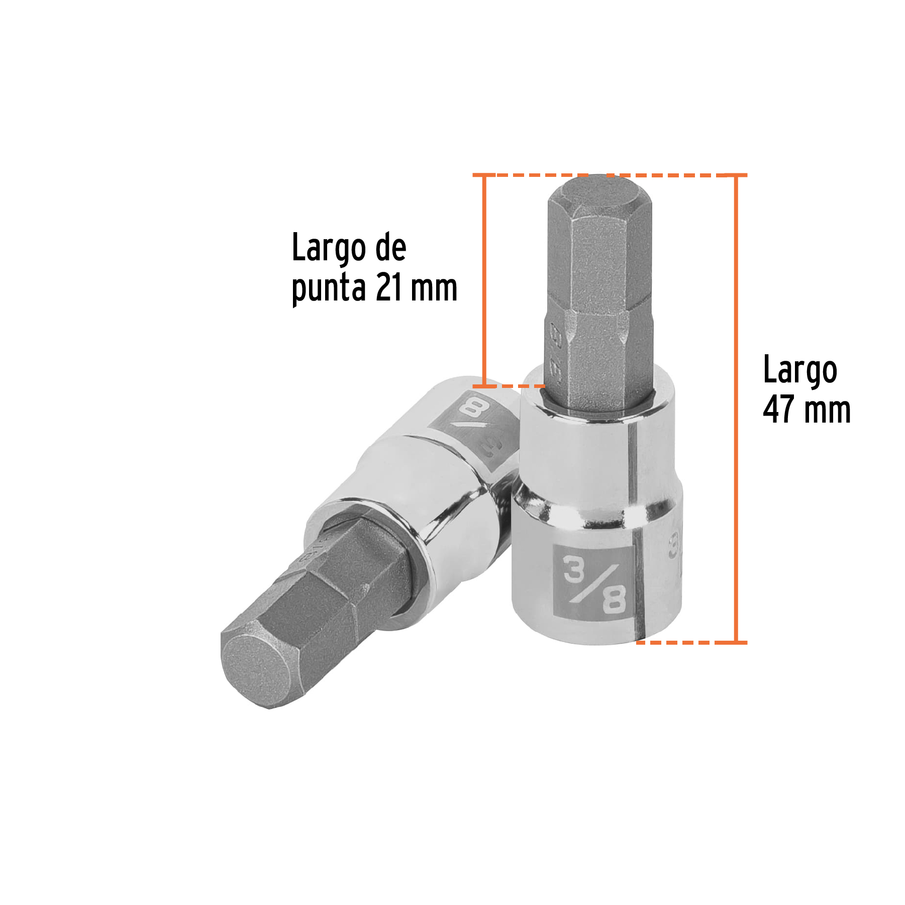 Dado punta hexagonal de 3/8′, cuadro 3/8′, Truper