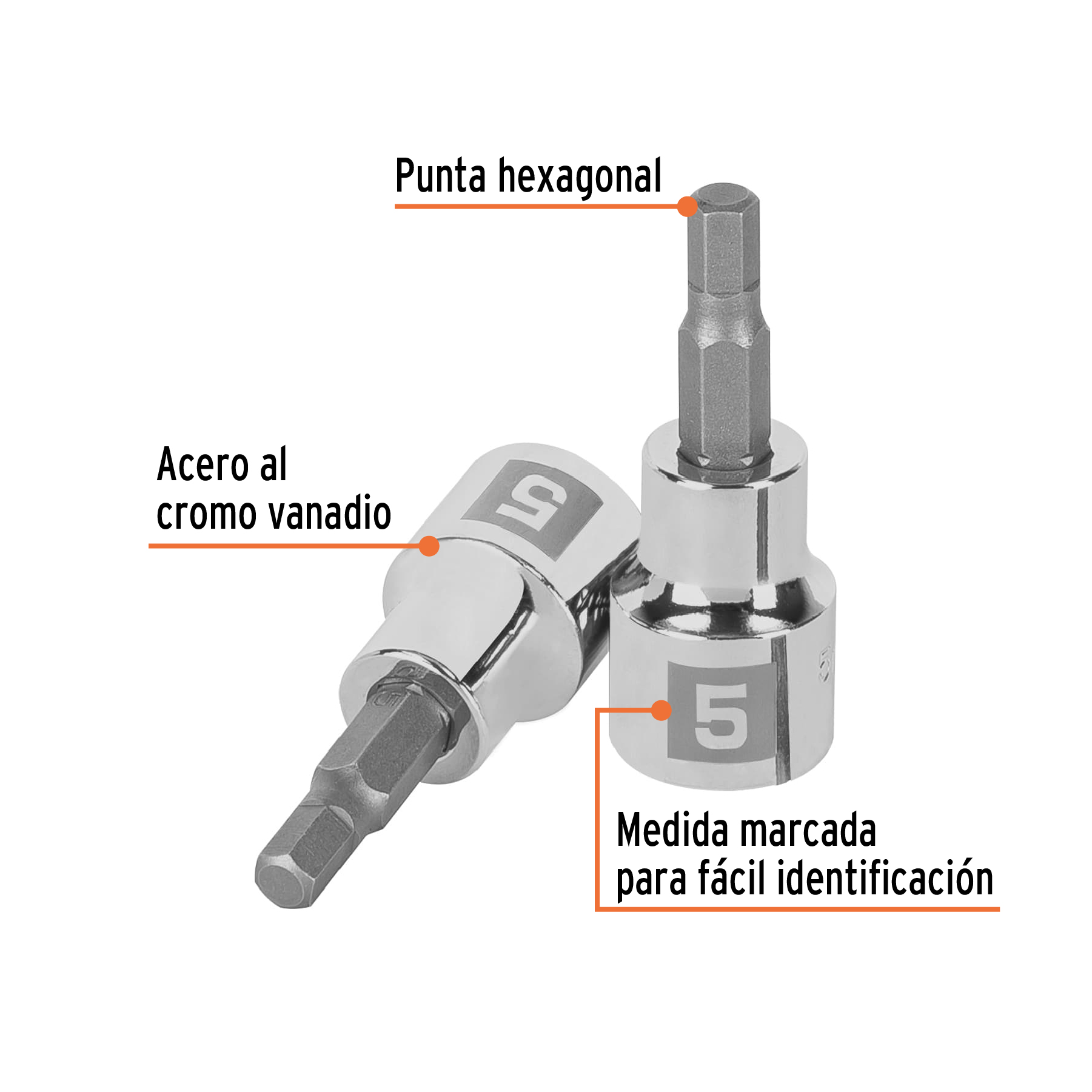 Dado punta hexagonal de 5 mm, cuadro 3/8′, Truper