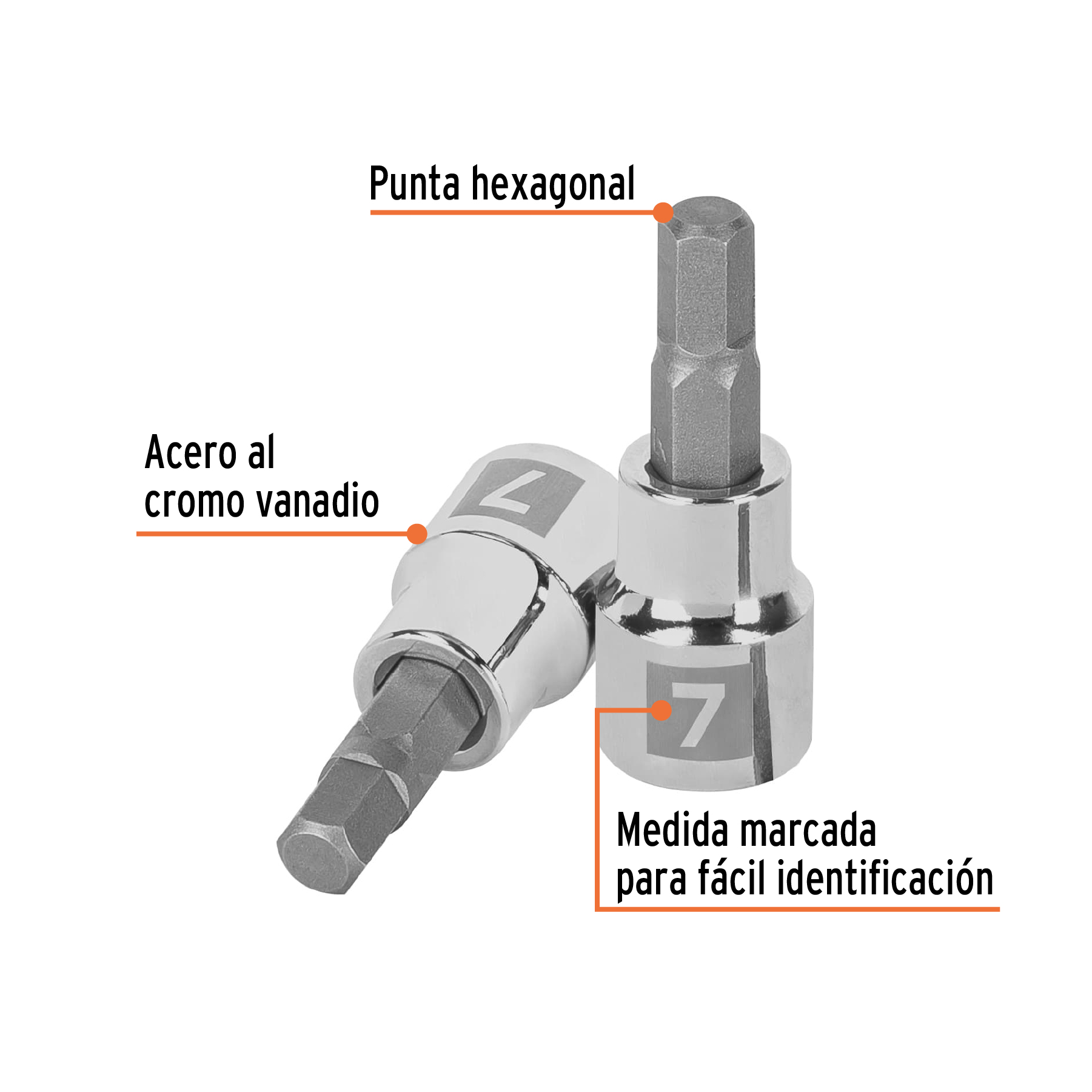 Dado punta hexagonal de 7 mm, cuadro 3/8′, Truper