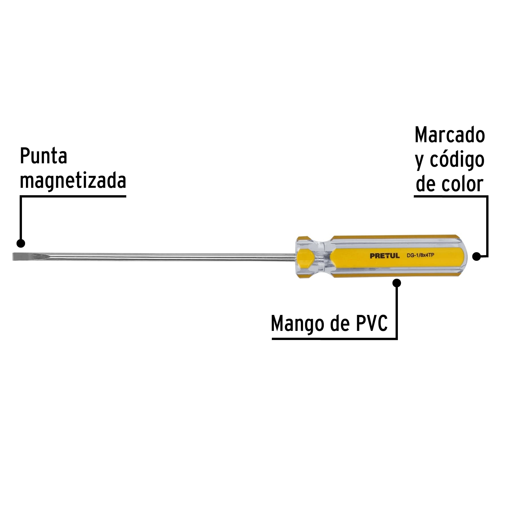Desarmador cabinet 1/8 x 4′ mango de PVC, Pretul