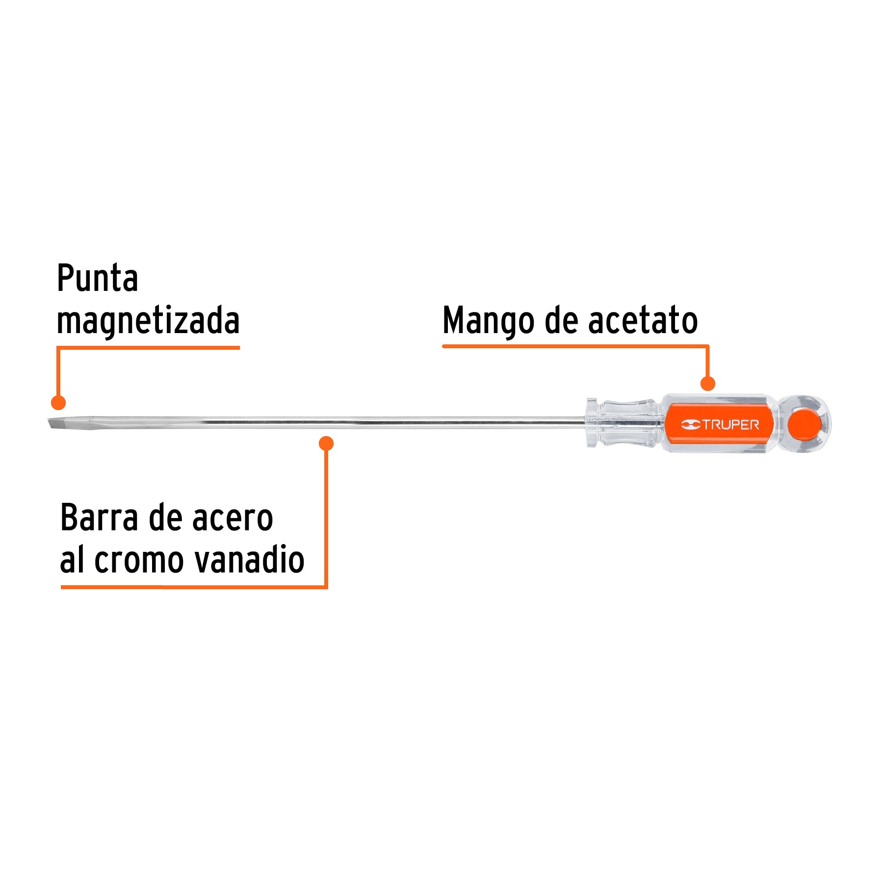 Desarmador cabinet 3/16′ x 8′ mango de acetato, Truper