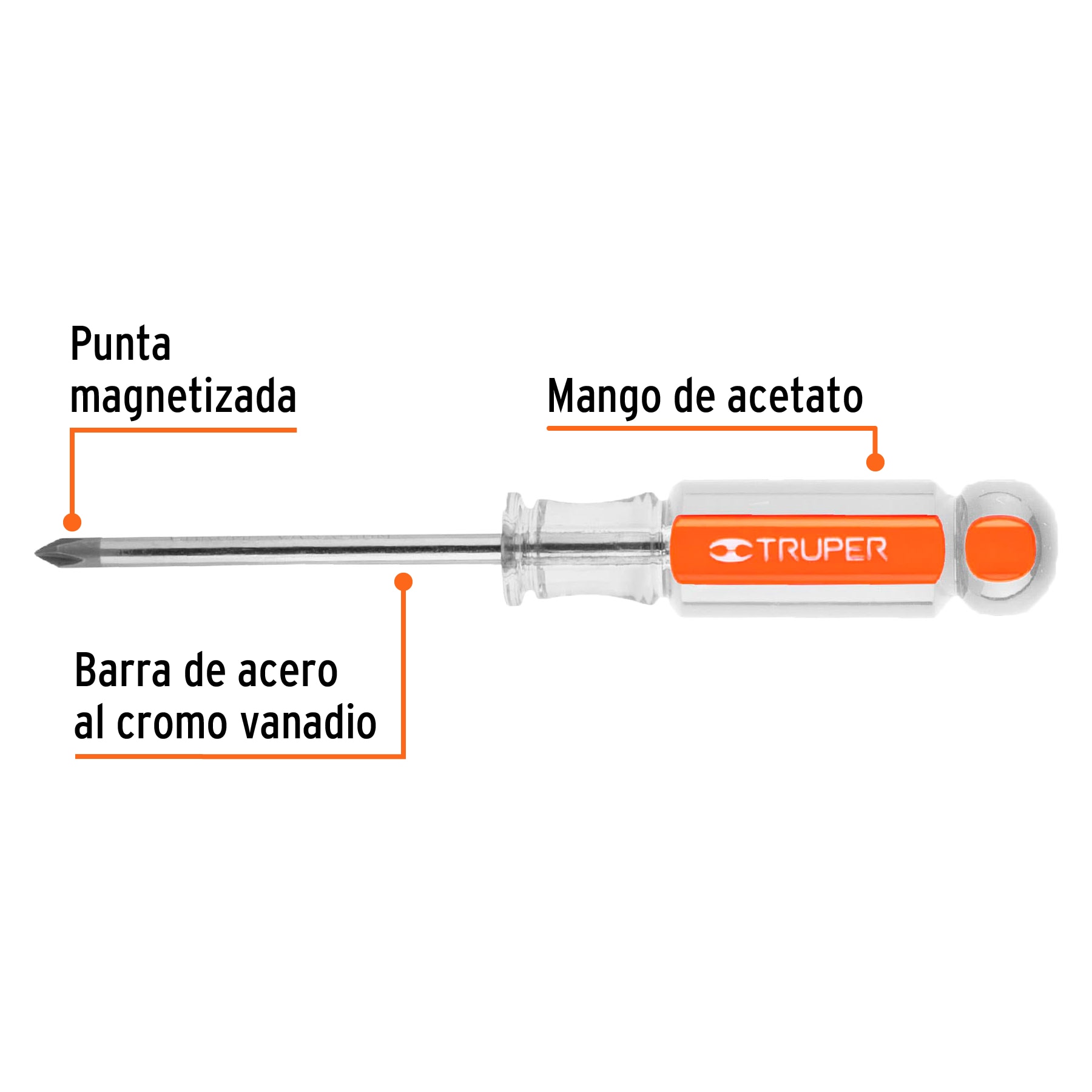 Desarmador de cruz 3/16′ x 3′ mango de acetato, Truper