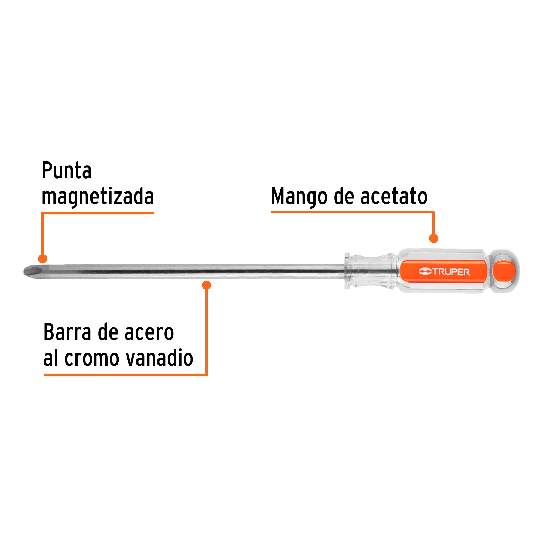 Desarmador de cruz 3/8′ x 8′ mango de acetato, Truper