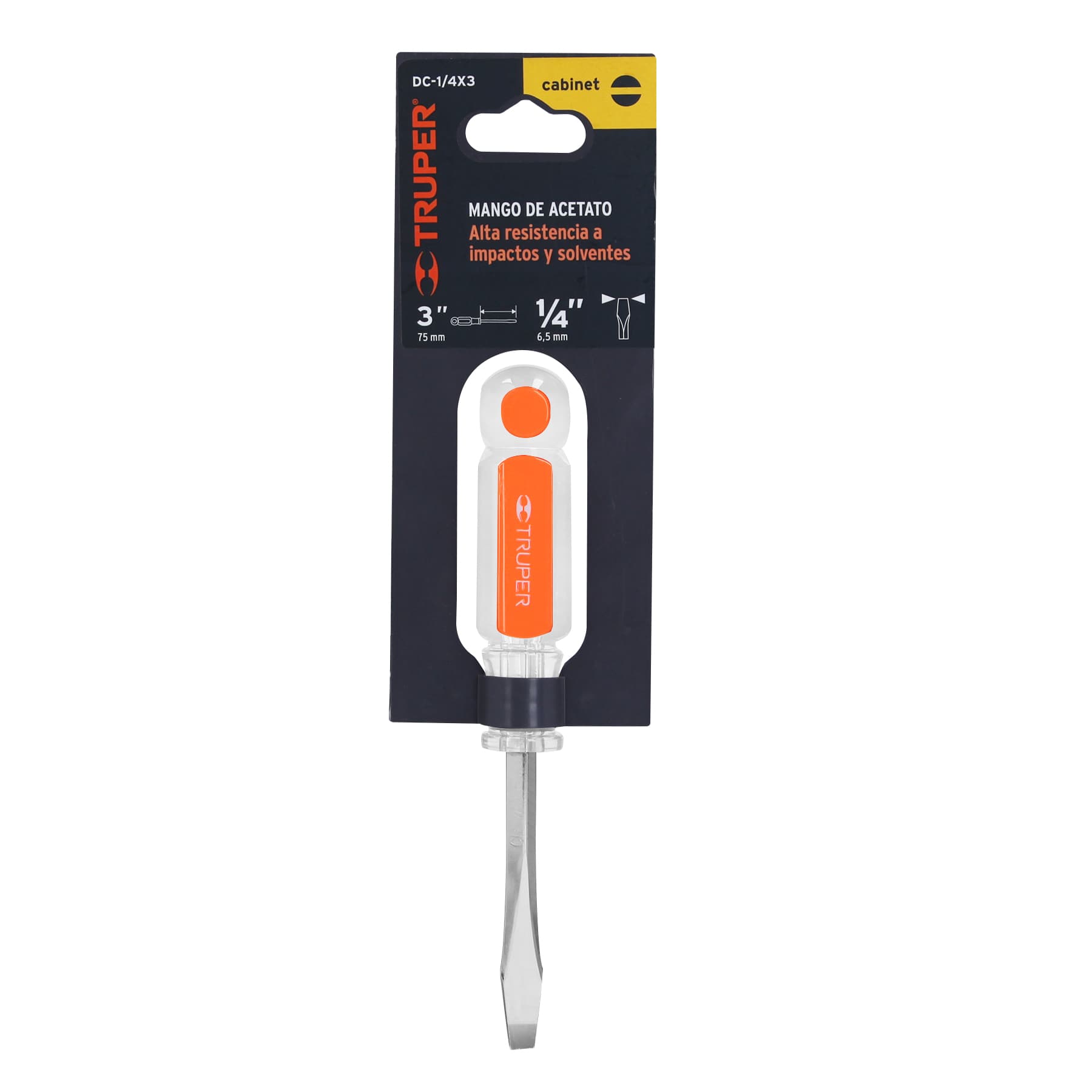 Desarmador plano 1/4 x 3′ barra cuadrada mango acetato
