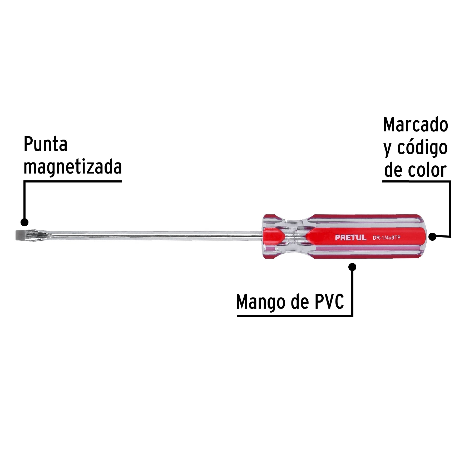Desarmador plano 1/4 x 6′ mango de PVC, Pretul