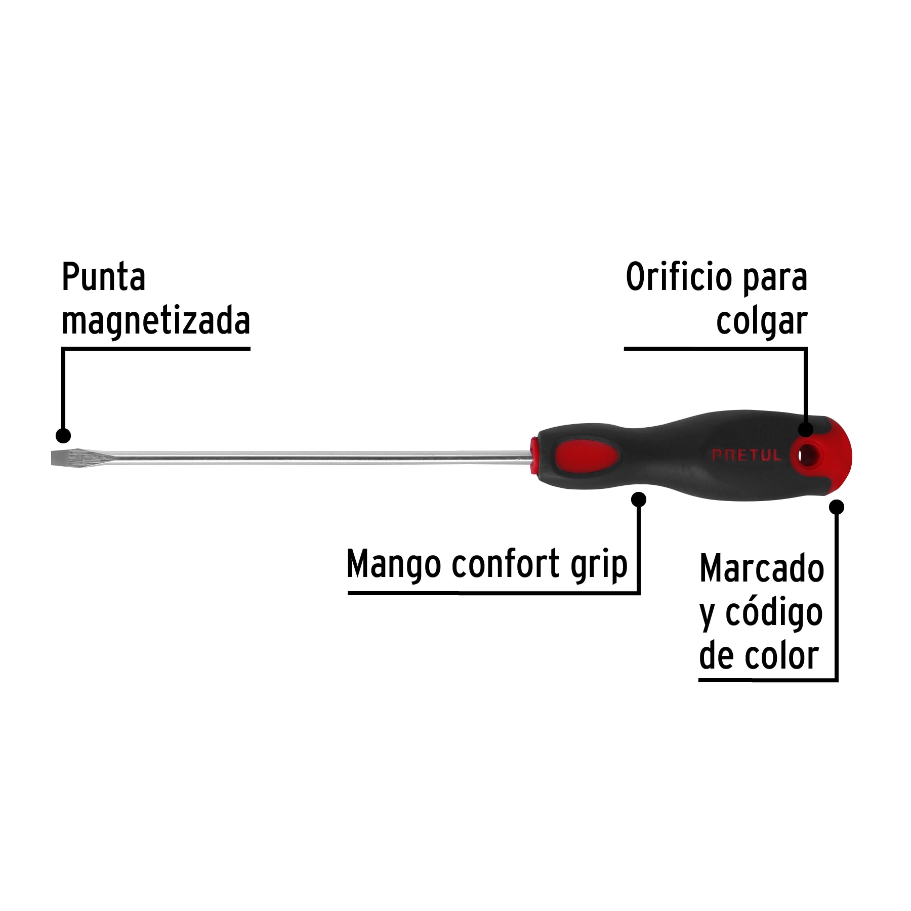 Desarmador plano 3/16 x 6′ mango Comfort Grip, Pretul
