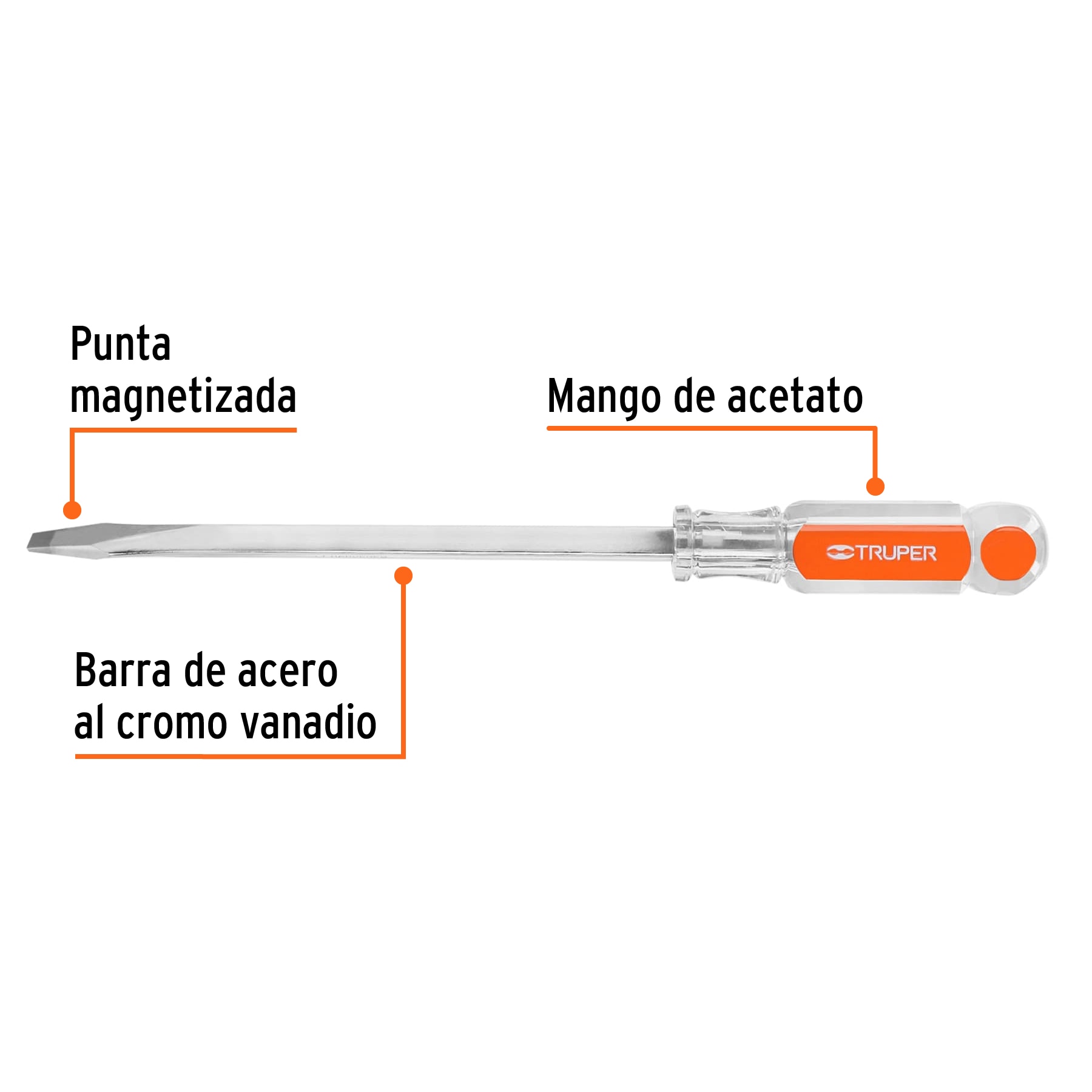 Desarmador plano 3/8 x 8′ barra cuadrada mango acetato