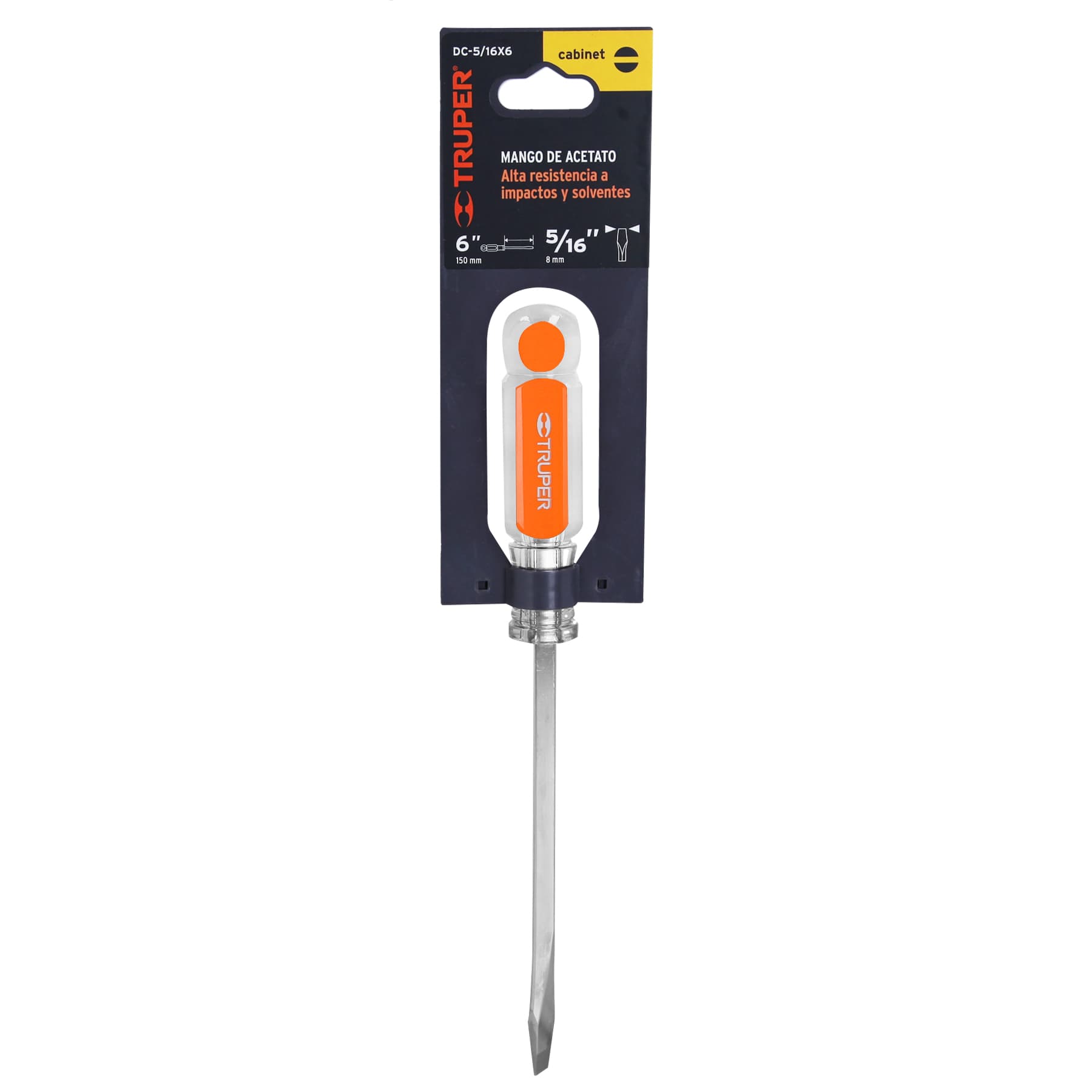 Desarmador plano barra 5/16 x 6′ cuadrada mango acetato