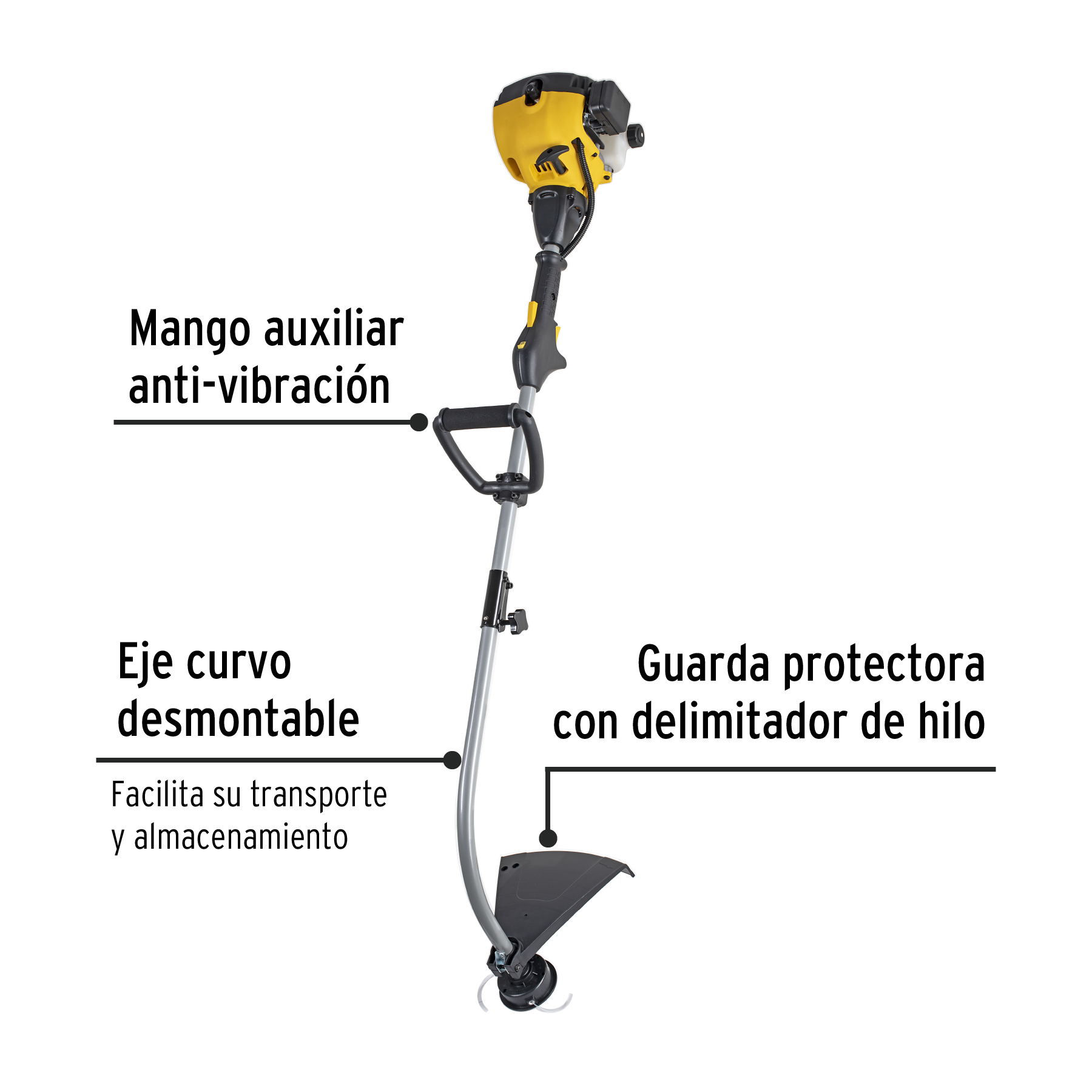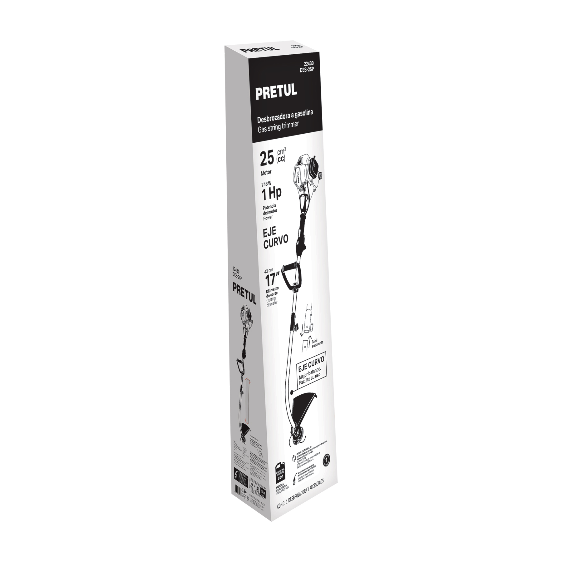 Desbrozadora a gasolina 25cc mango tipo ‘D’, 17’corte, curva