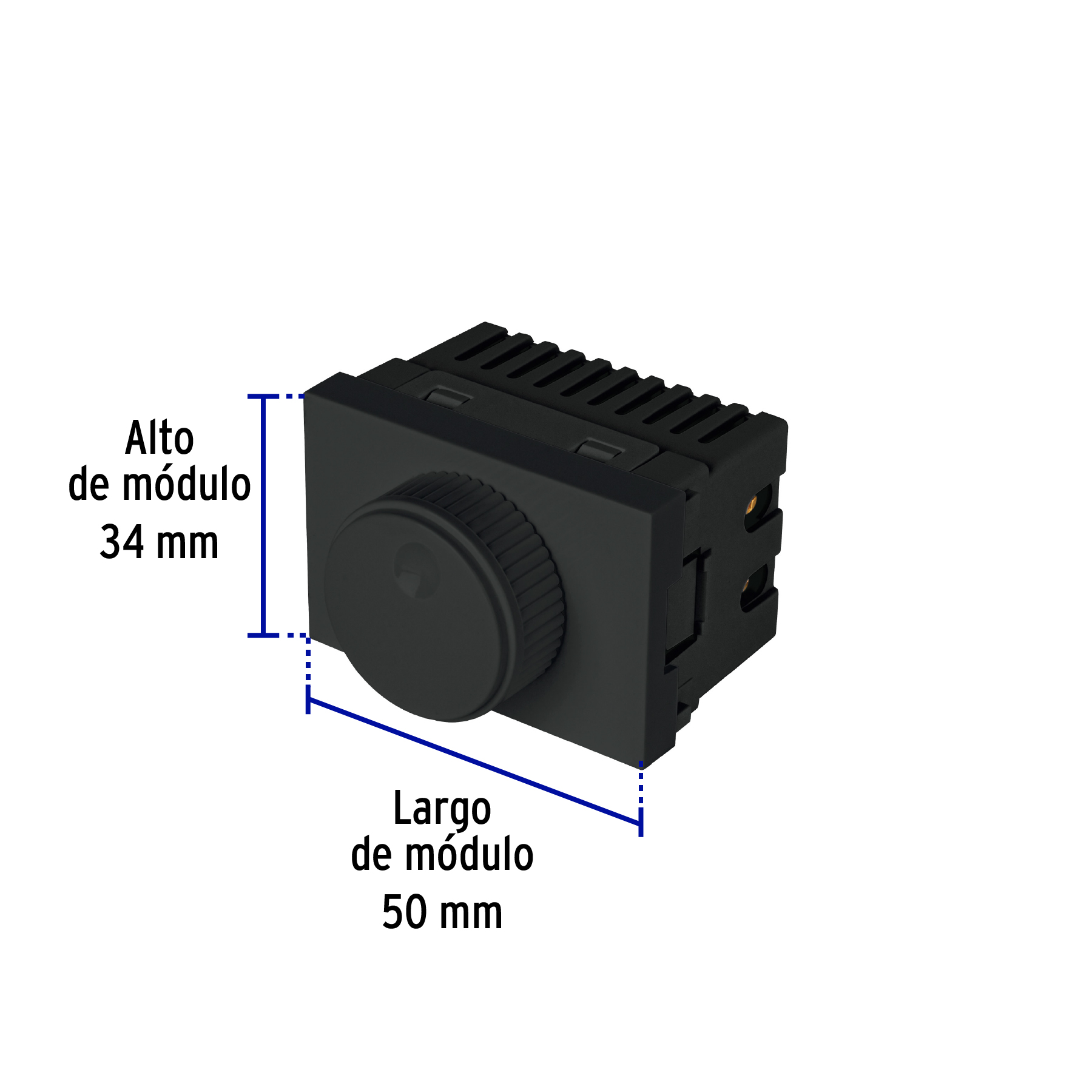 Dimmer giratorio negro de 1.5 módulos, línea Lisboa, Volteck