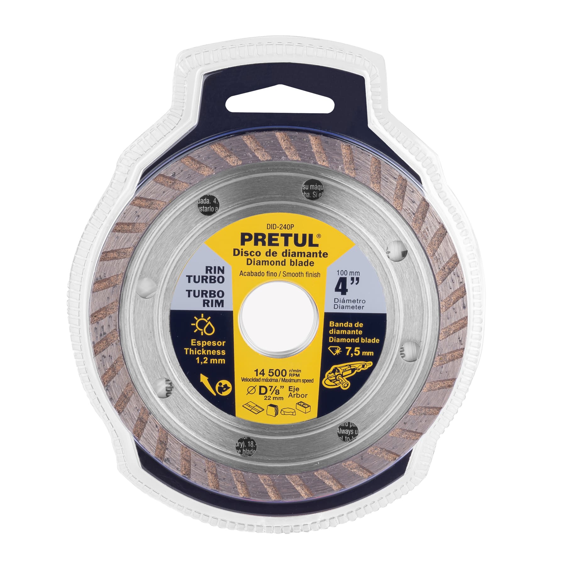 Disco de diamante de 4′ x 1.2 mm, rin turbo, PRETUL