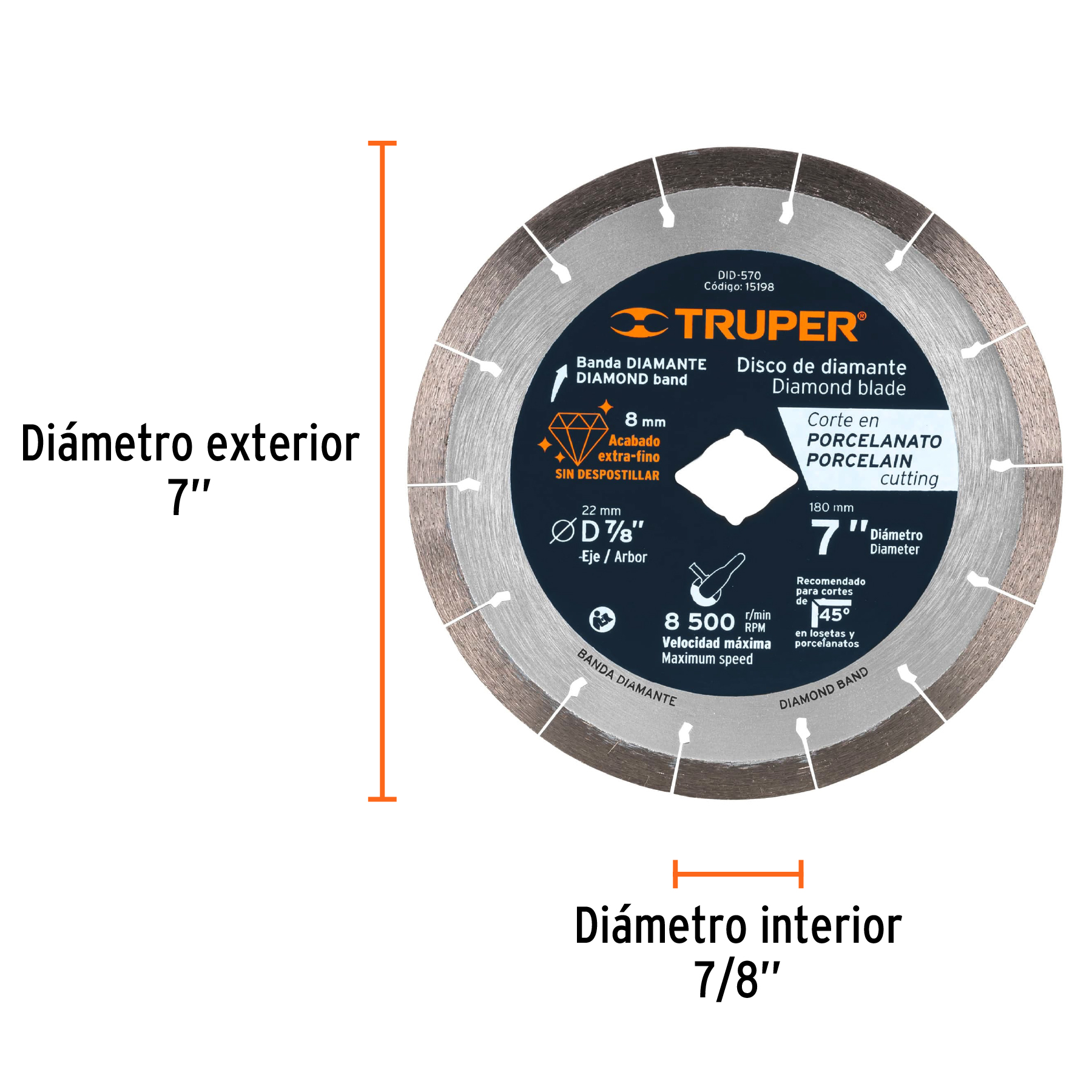 Disco de diamante de 7′ x 1.6 mm, corte de porcelanato