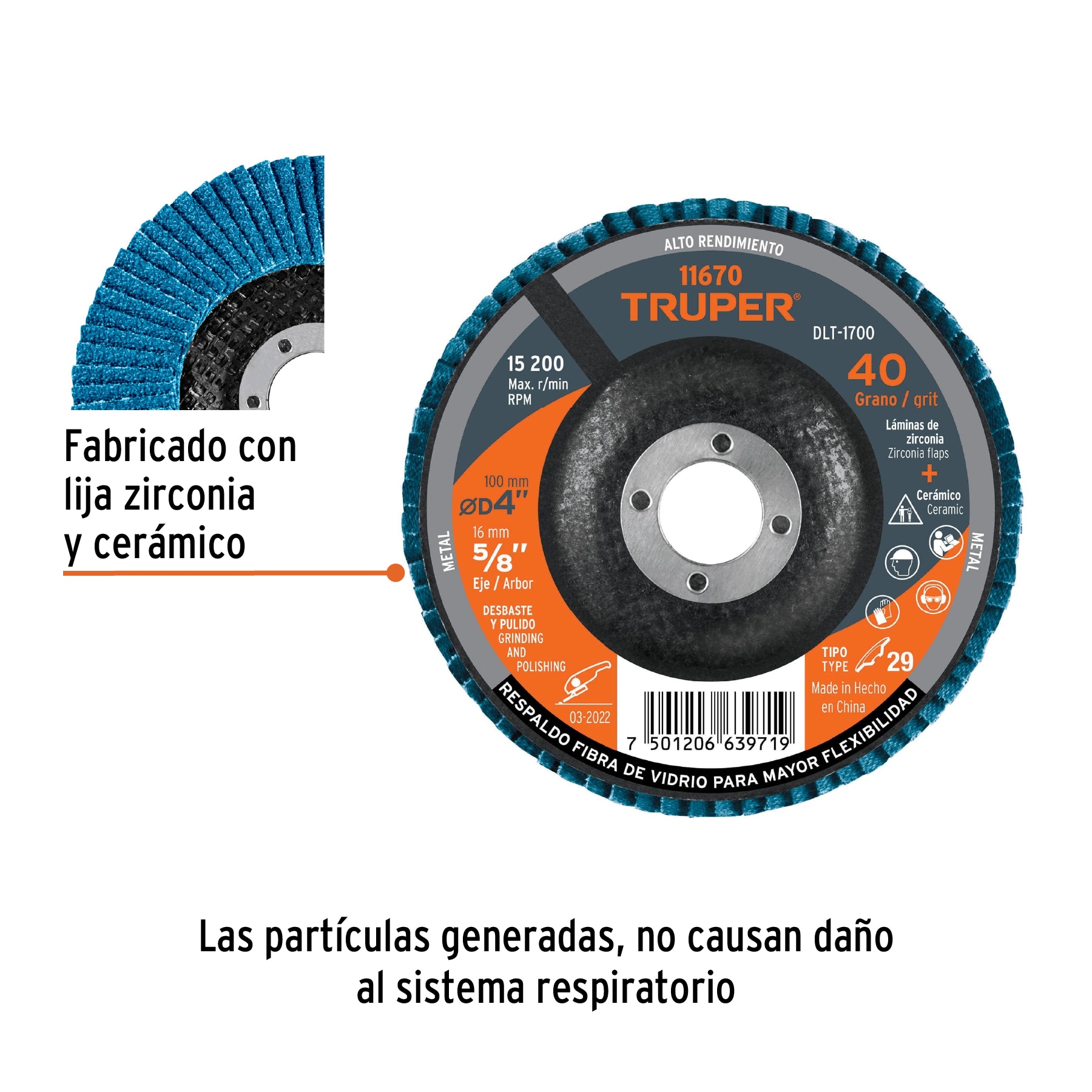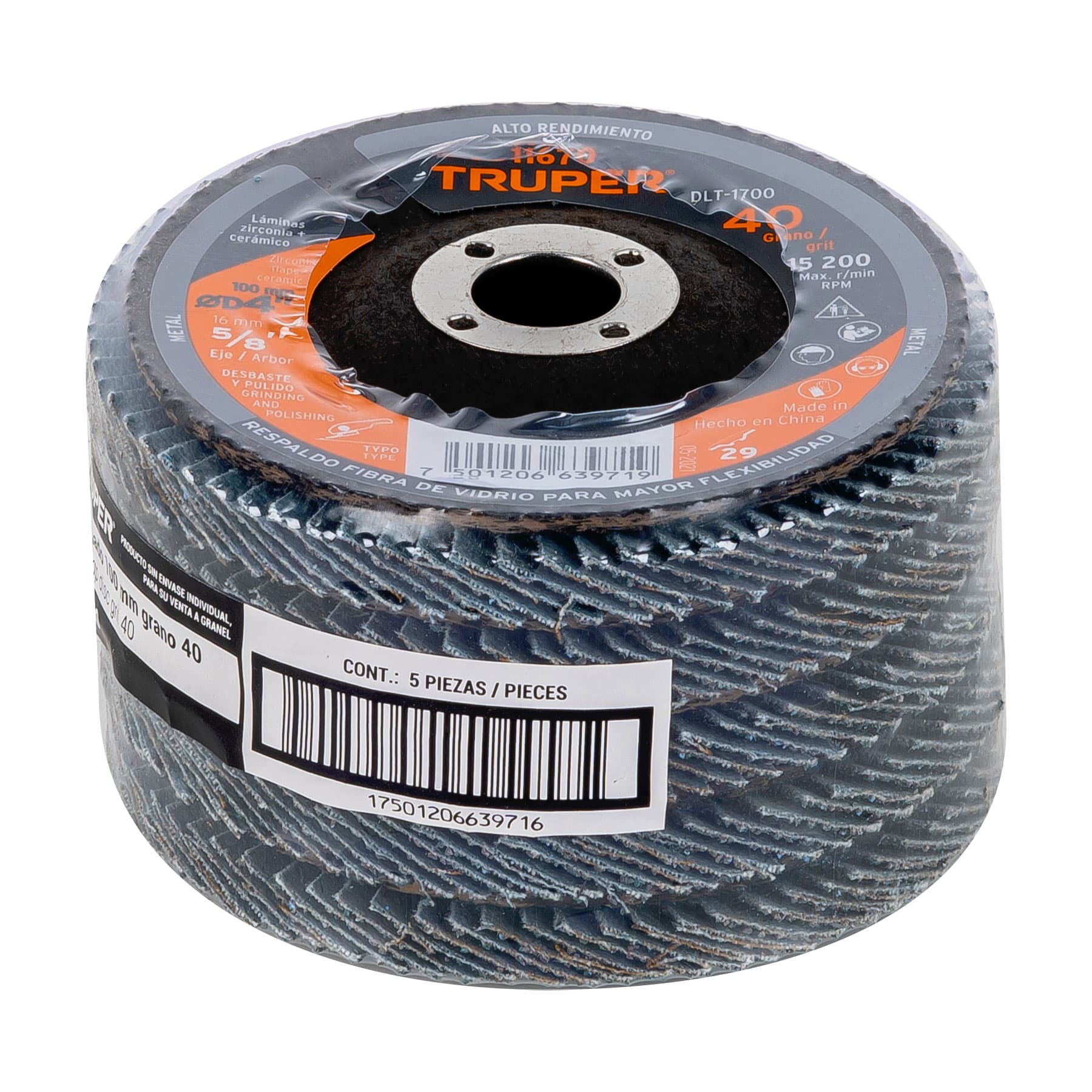 Disco laminado 4′, grano 40 centro 5/8′, fibra, TRUPER