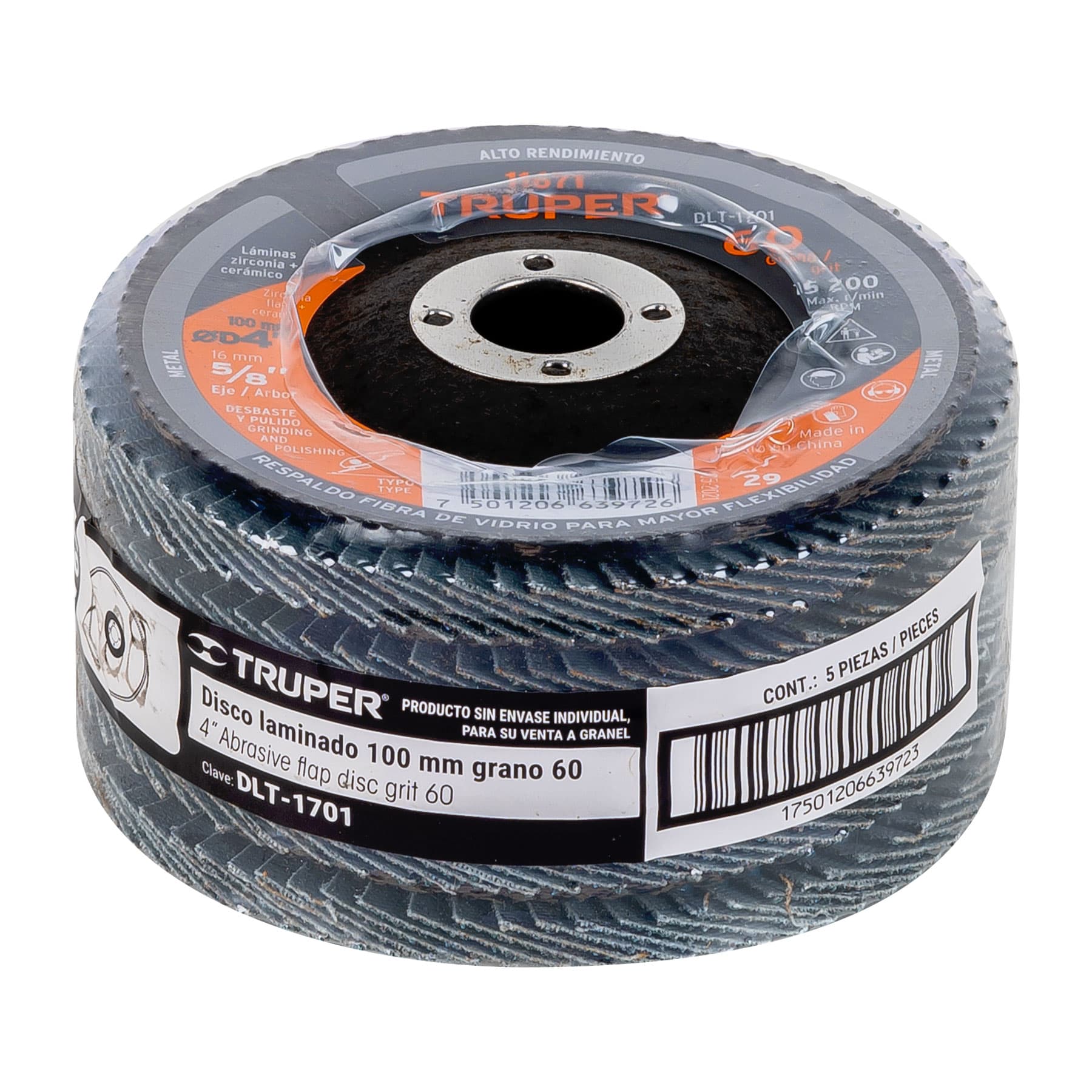 Disco laminado 4′, grano 60 centro 5/8′, fibra, TRUPER