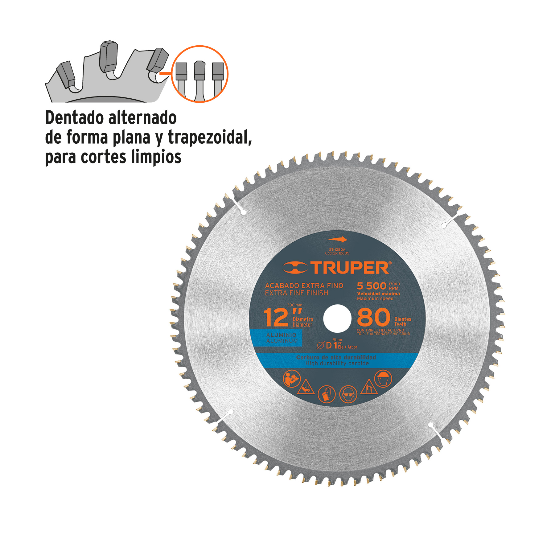 Disco sierra 12′ para aluminio, 80 dientes centro 1′, Truper