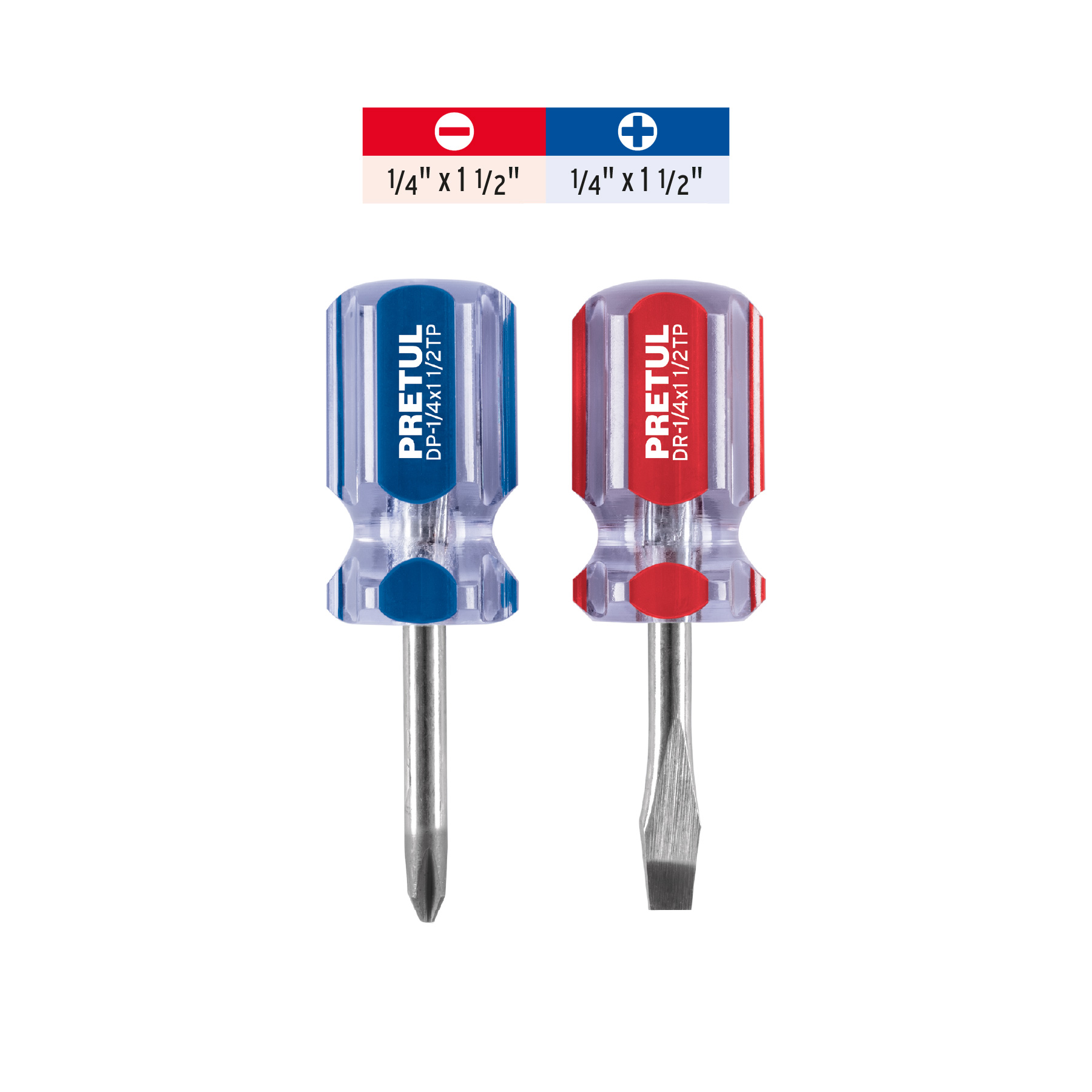 Dúo de desarmadores 1/4 x 1-1/2′ mango de PVC, Pretul