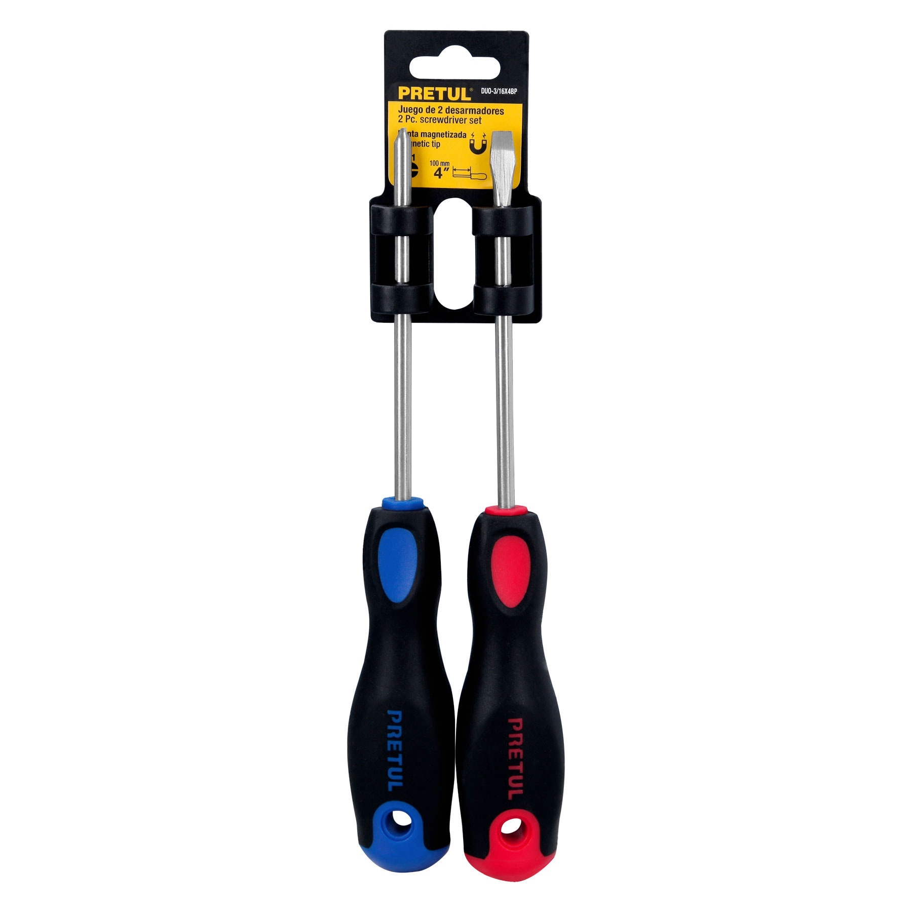 Dúo de desarmadores 3/16′ x 4′ mango Comfort Grip, Pretul