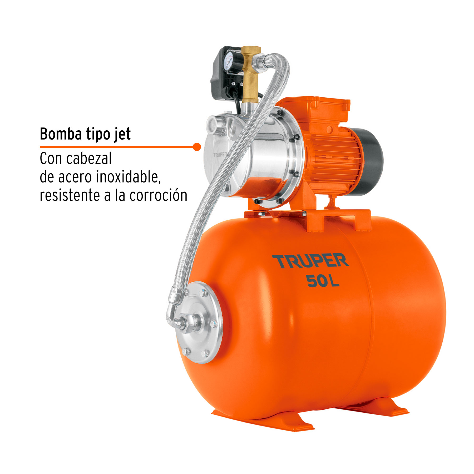 Equipo hidroneumático 50L, bomba jet inox. 1 HP, TRUPER