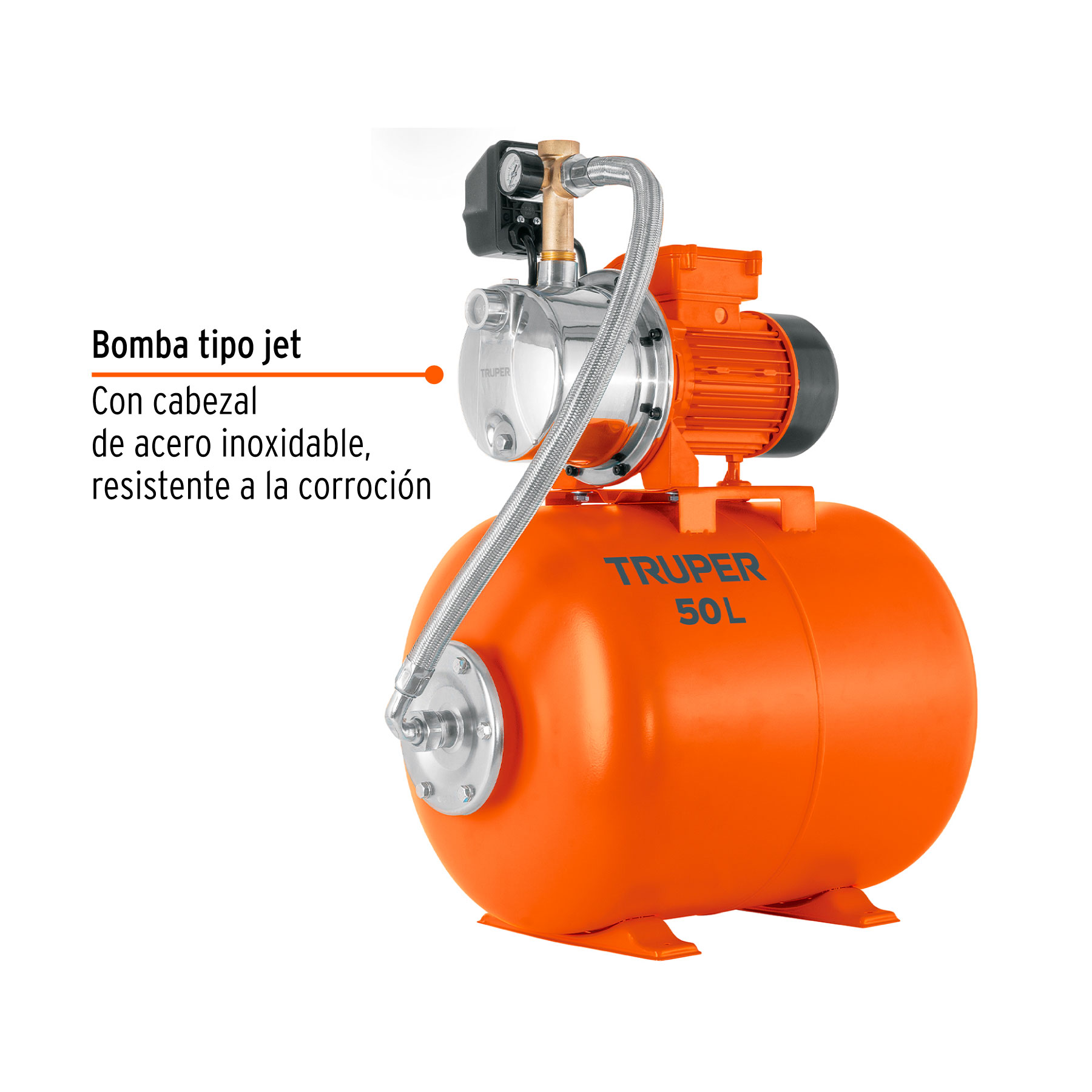 Equipo hidroneumático 50L, bomba jet inox. 3/4 HP, TRUPER