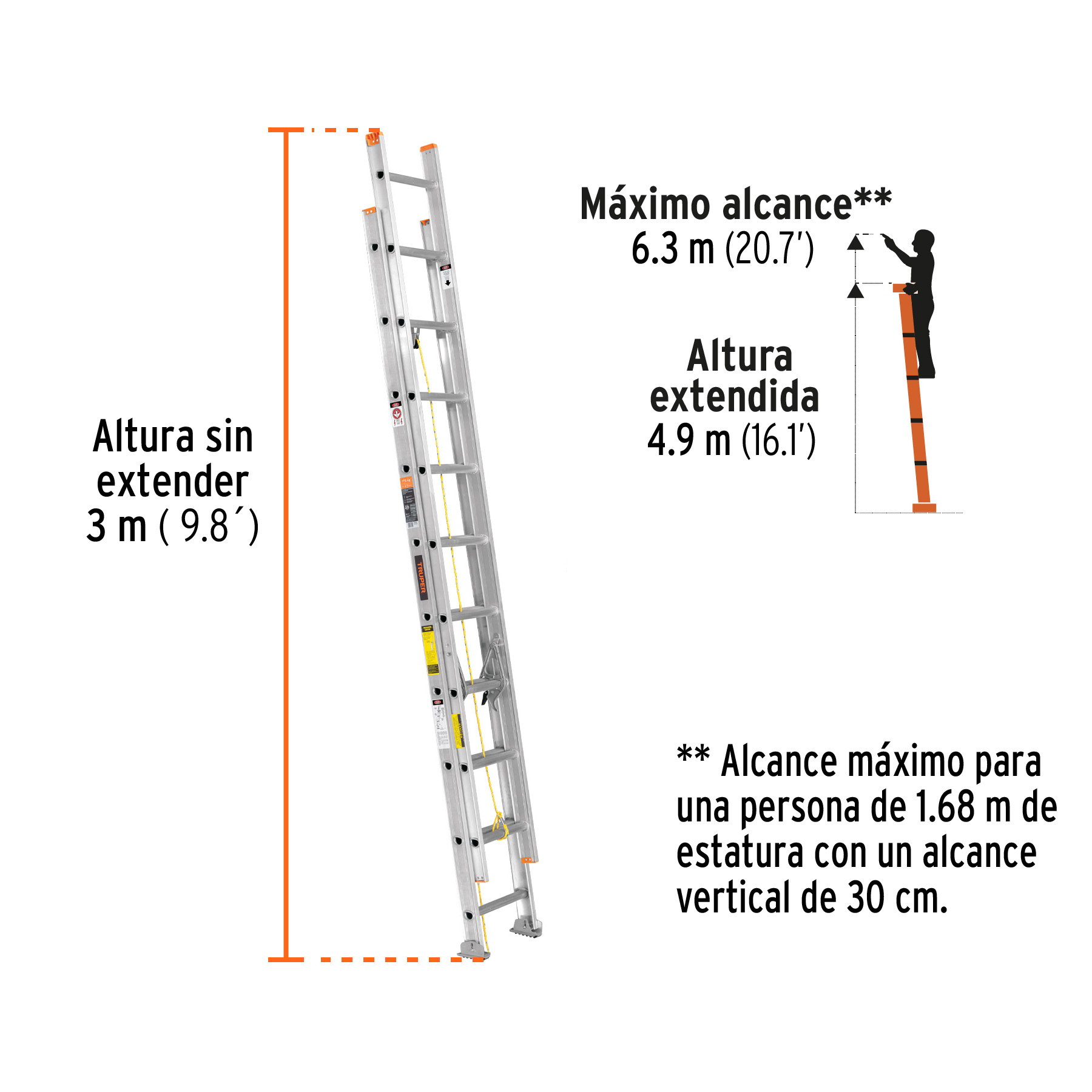 Escalera de extensión, tipo II, 20 peldaños, Truper