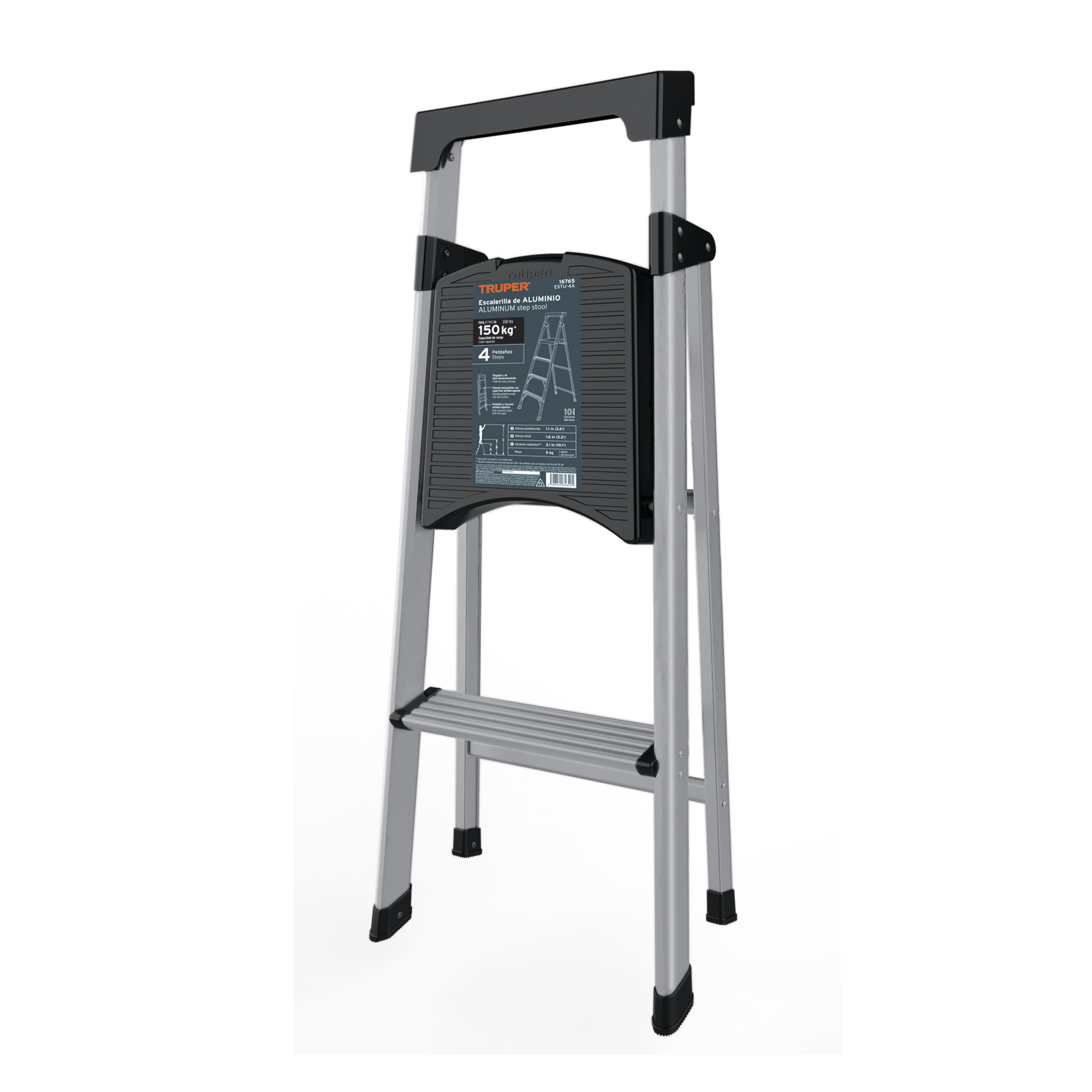 Escalera tubular plegable, 2 peldaños, aluminio, Truper