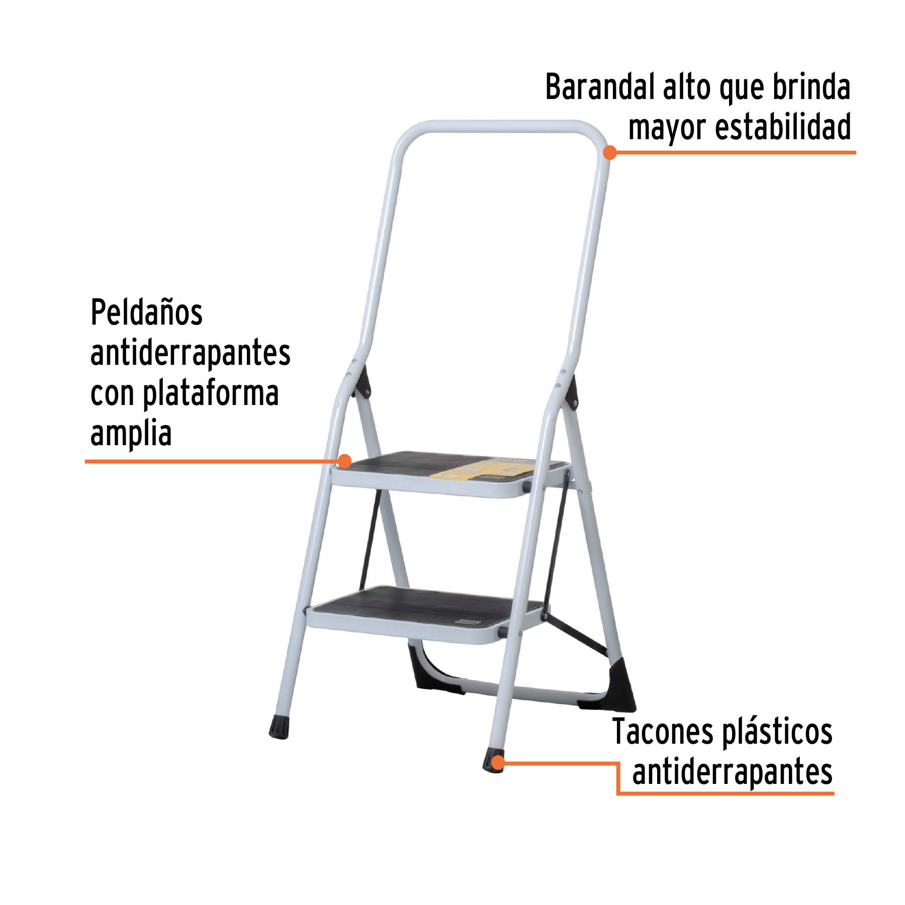 Escalera tubular, plegable, 2 peldaños con barandal, Pretul