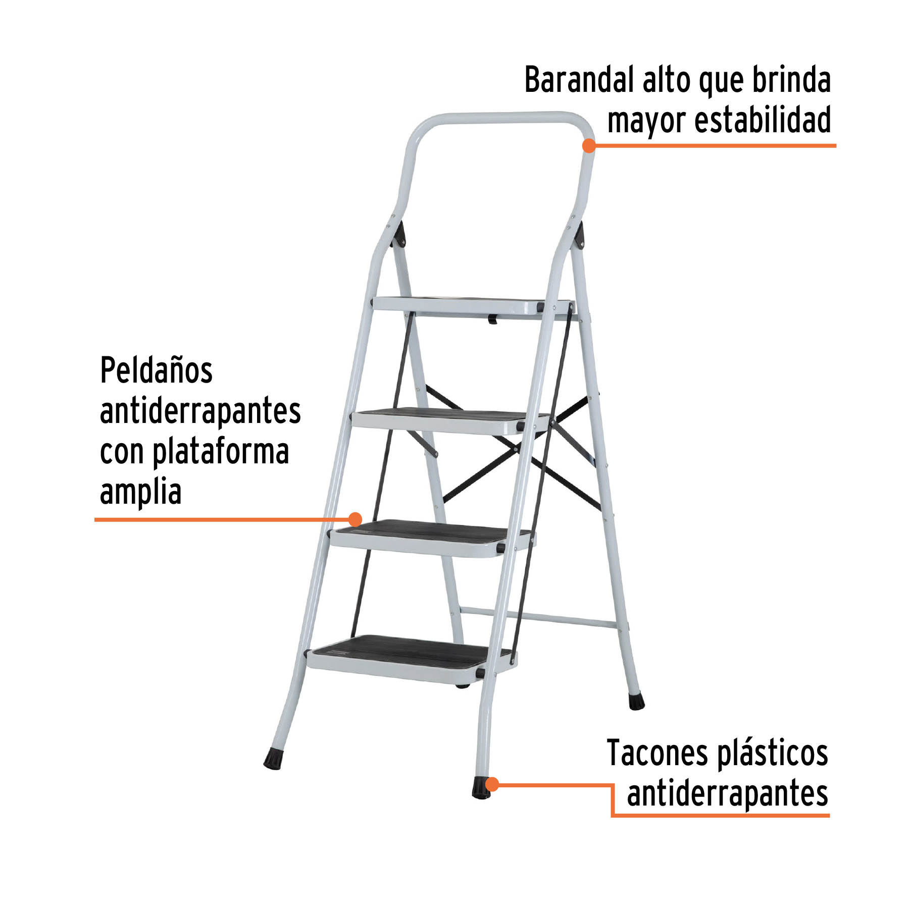 Escalera tubular, plegable, 4 peldaños, Pretul
