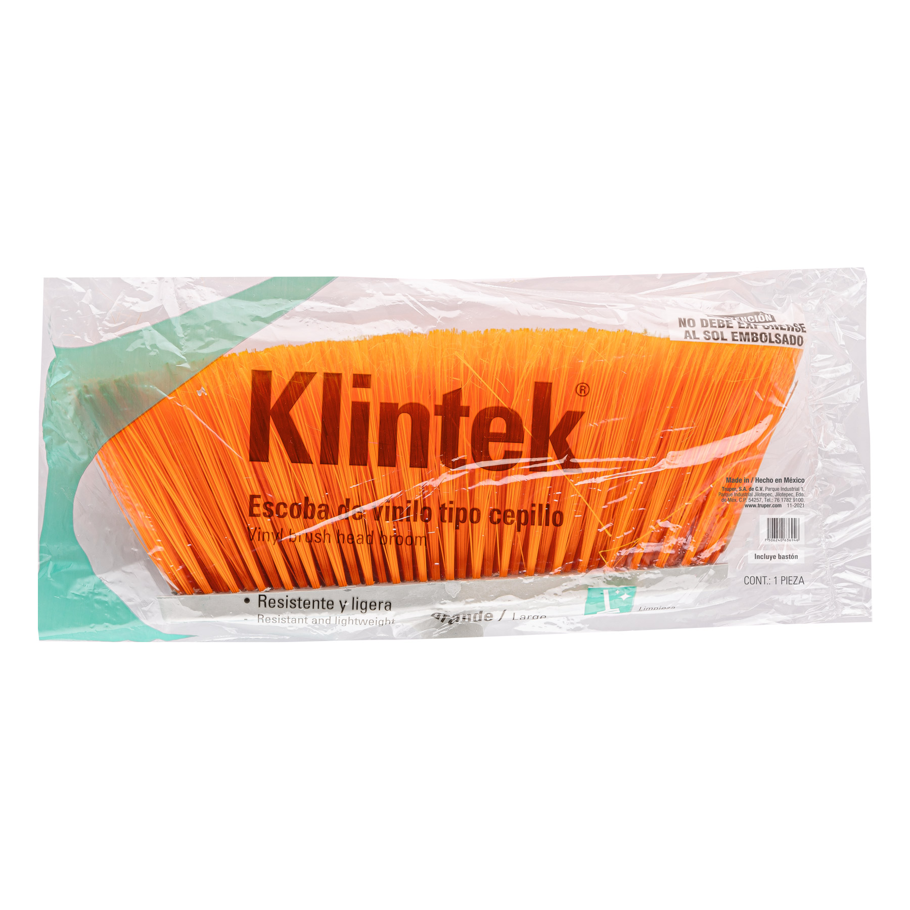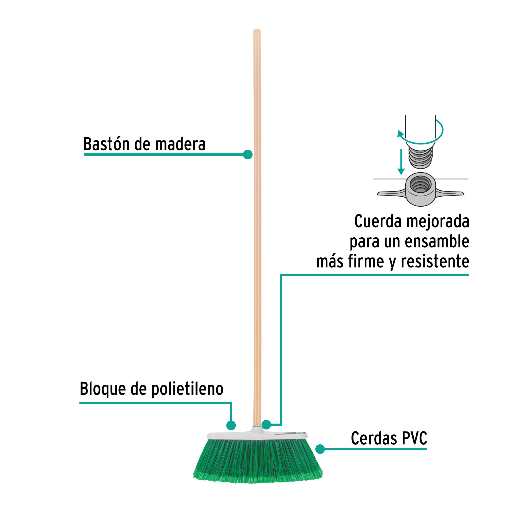 Escoba grande tipo cepillo, cerdas de PVC, bastón de madera