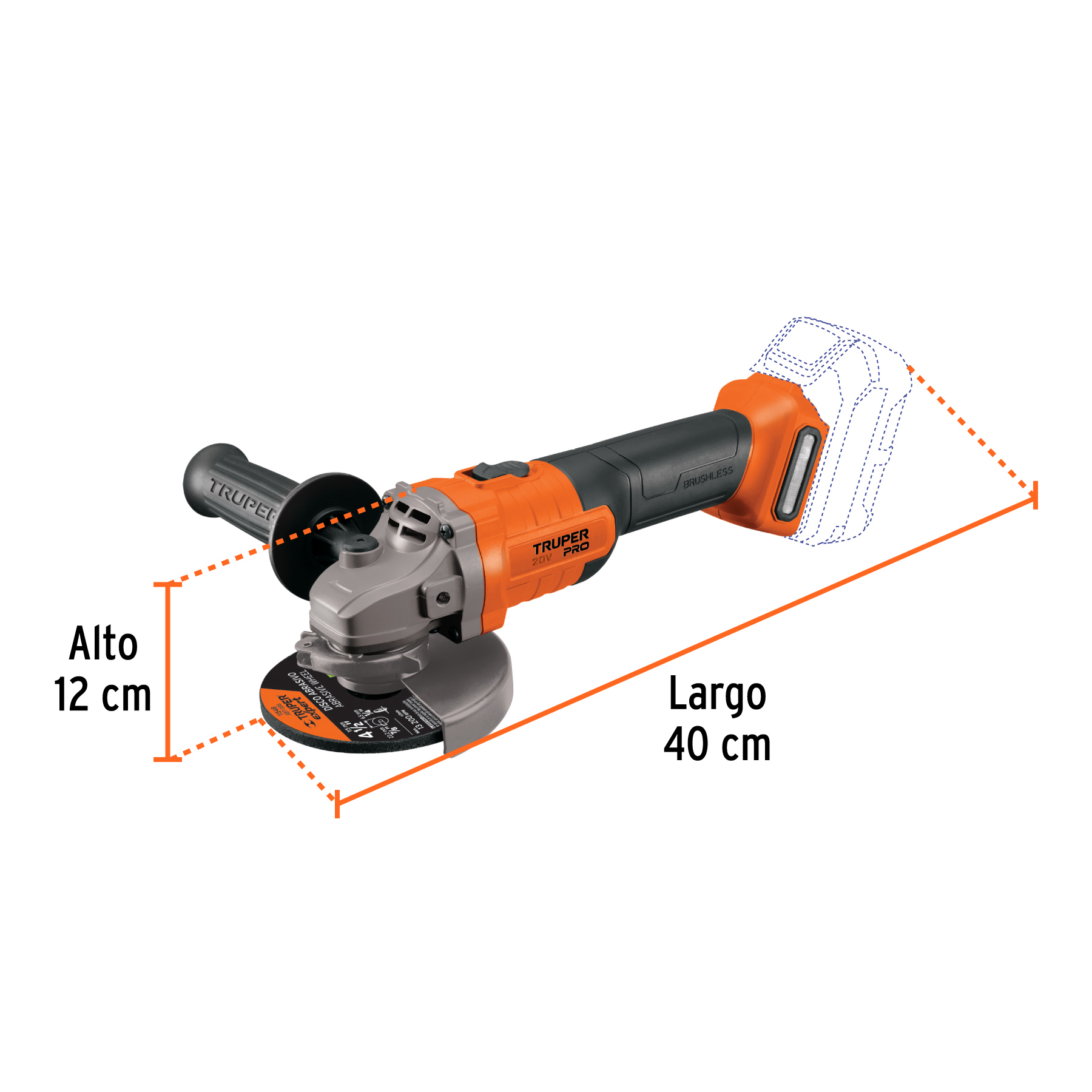 Esmeriladora 4-1/2′, 20V, sin accesorios, TRUPER PRO