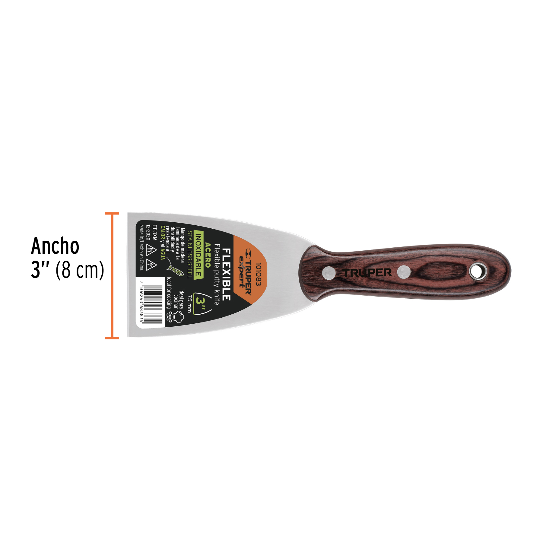 Espátula 3′ acero inoxidable con mango de madera, Expert