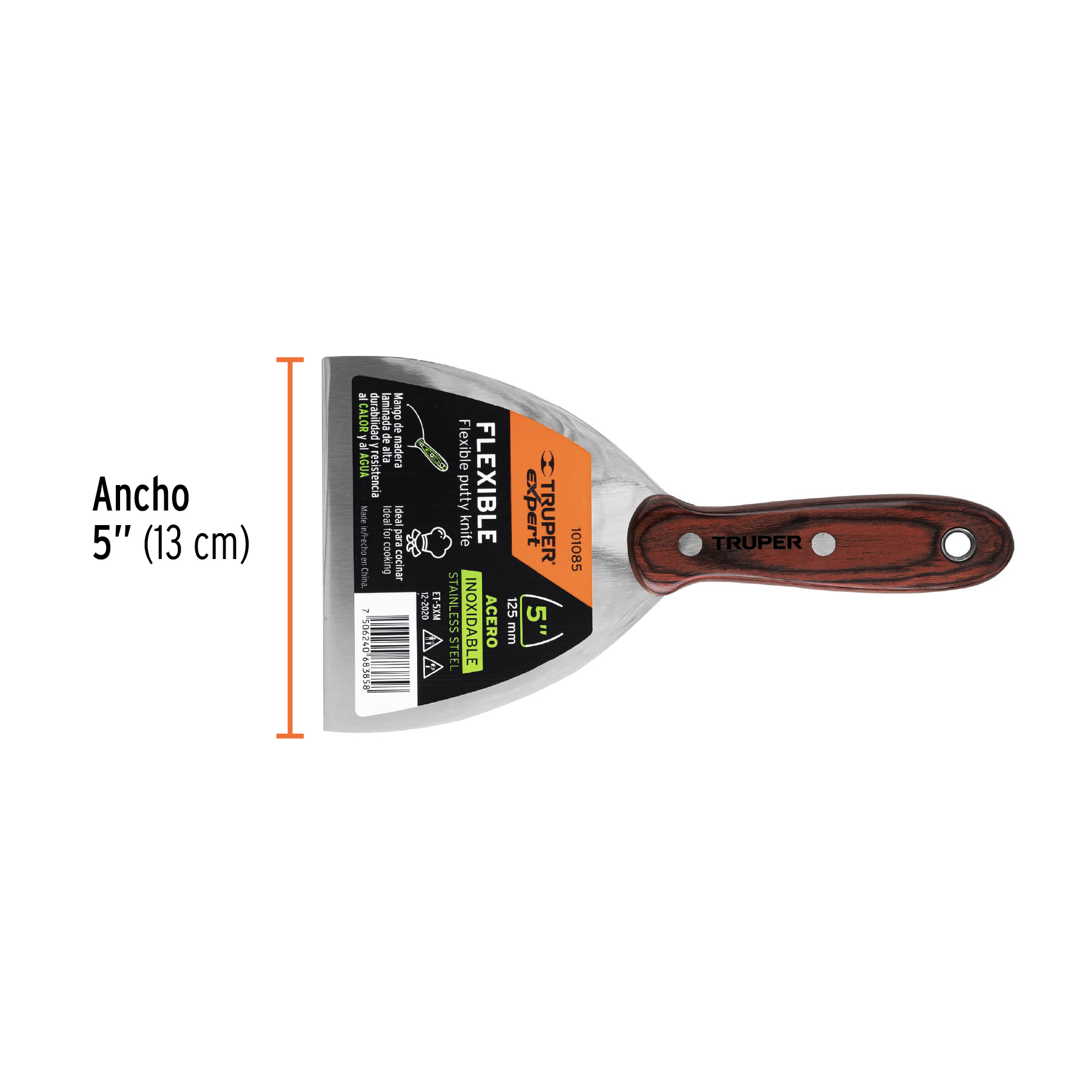 Espátula 5′ acero inoxidable con mango de madera, Expert