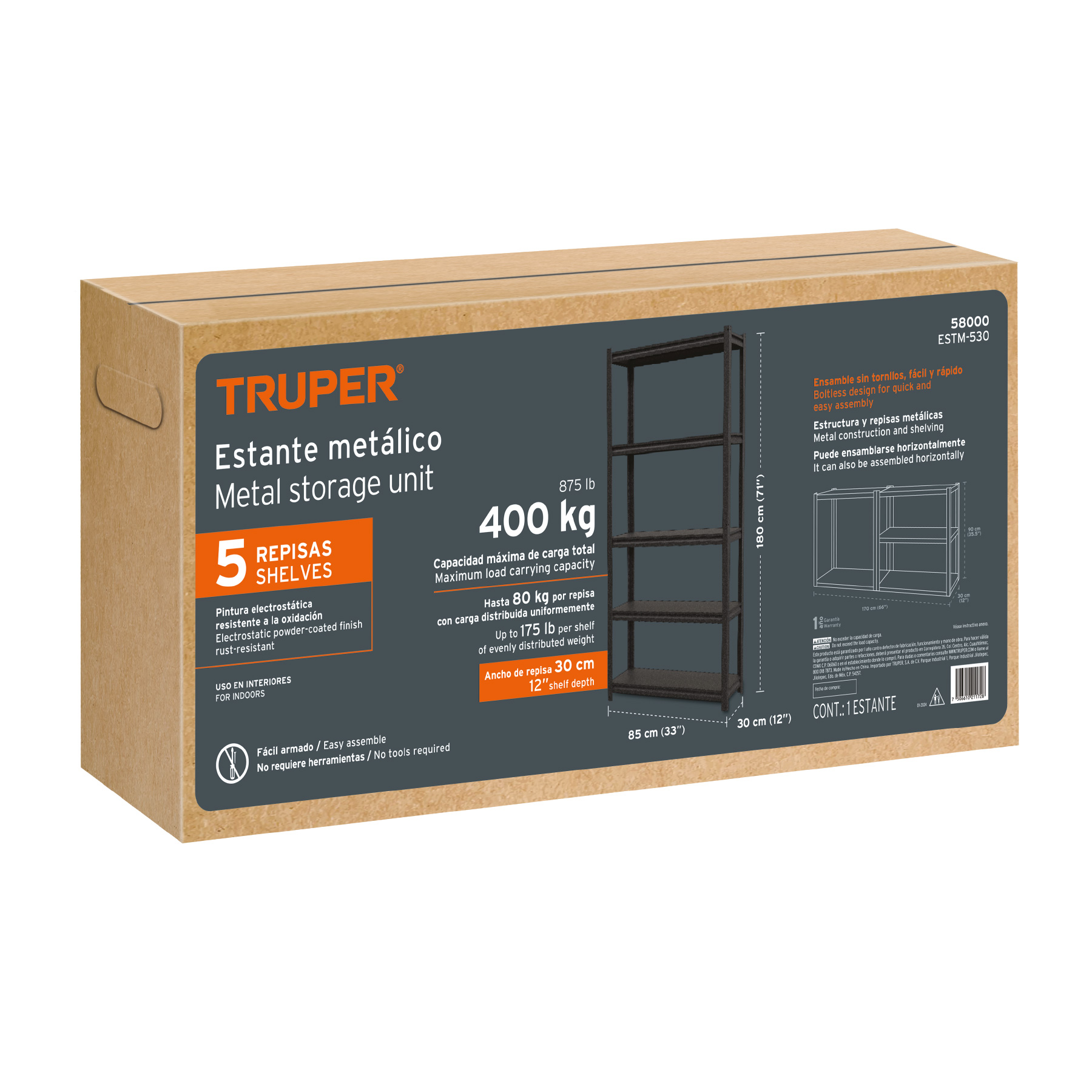 Estante metálico 5 repisas capacidad 80 Kg,180x30x85, TRUPER
