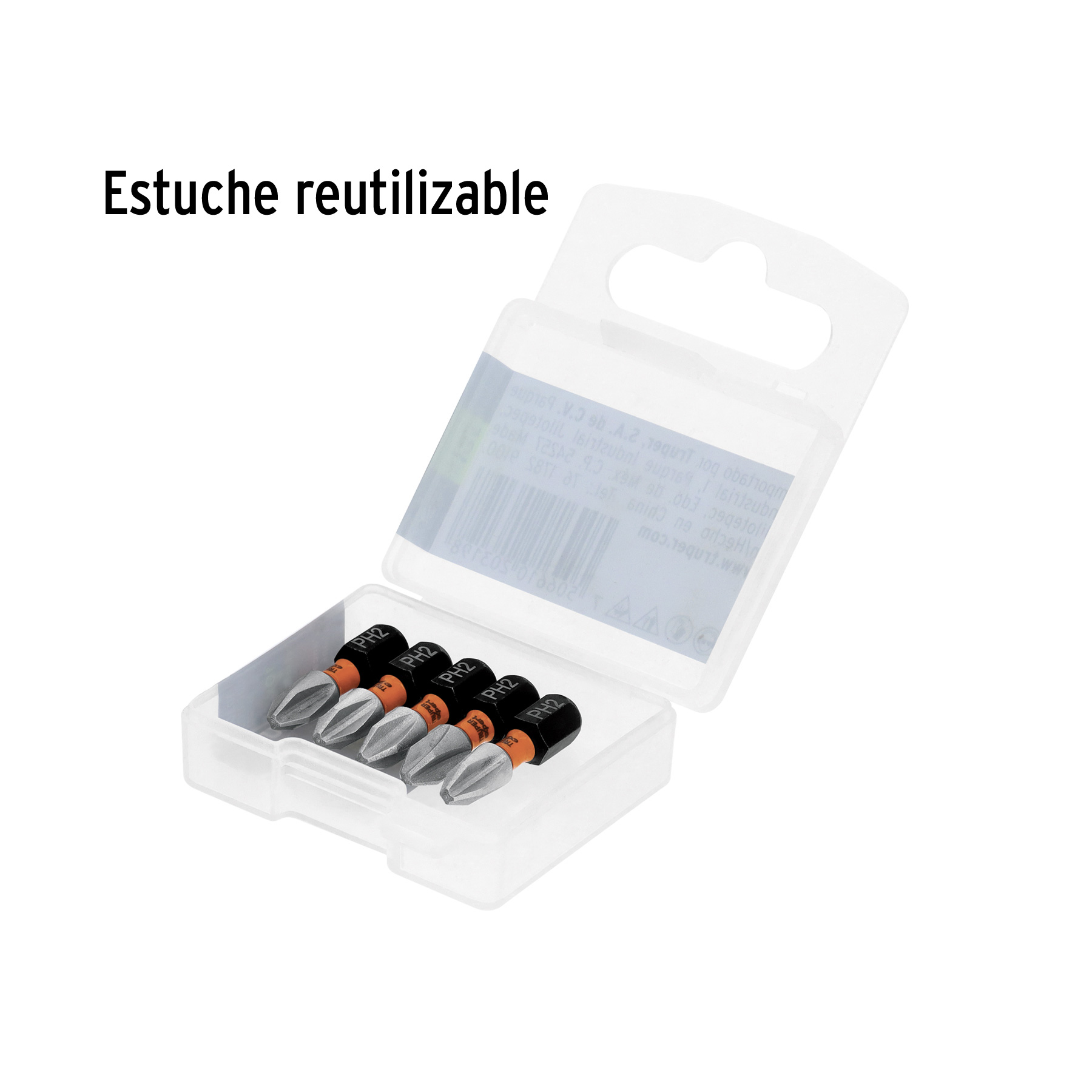 Estuche con 5 puntas de cruz PH2 de impacto largo 1′