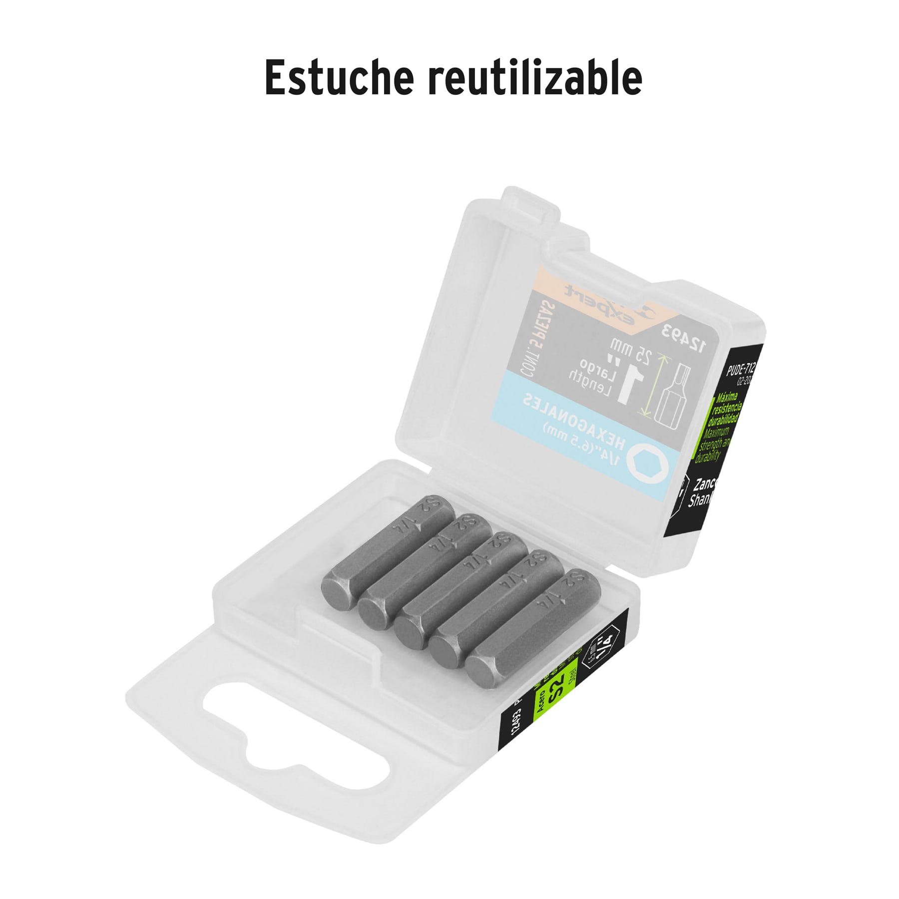 Estuche con 5 puntas hexagonales de 1/4mm largo 1′, Expert