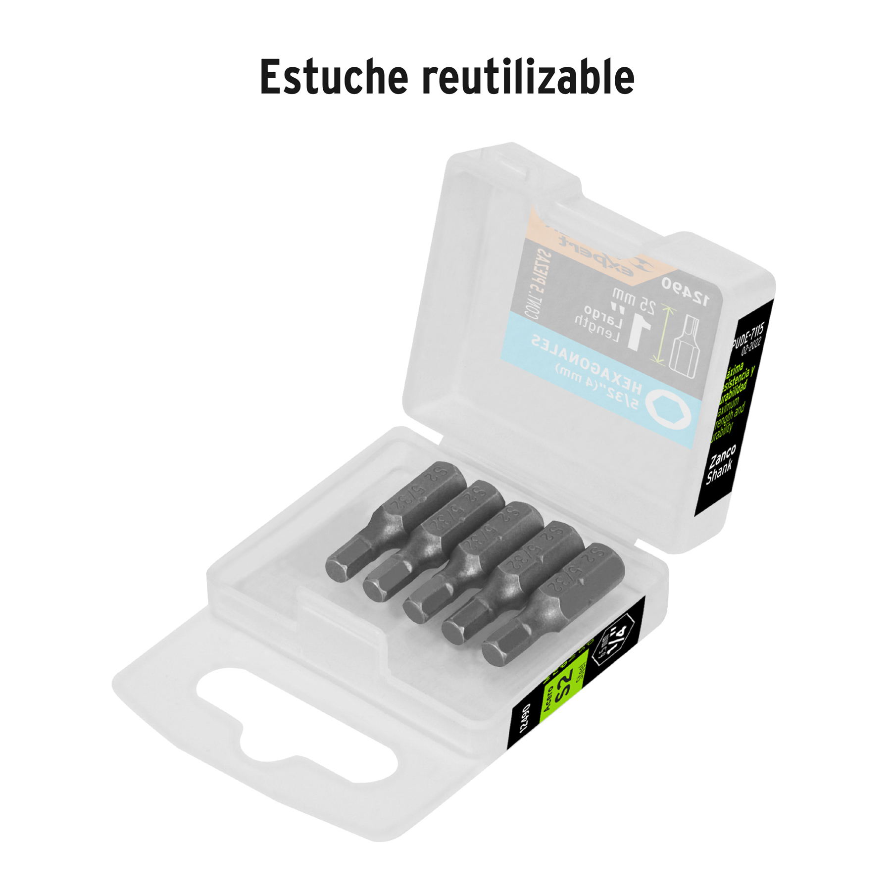 Estuche con 5 puntas hexagonales de 5/32mm largo 1′, Expert