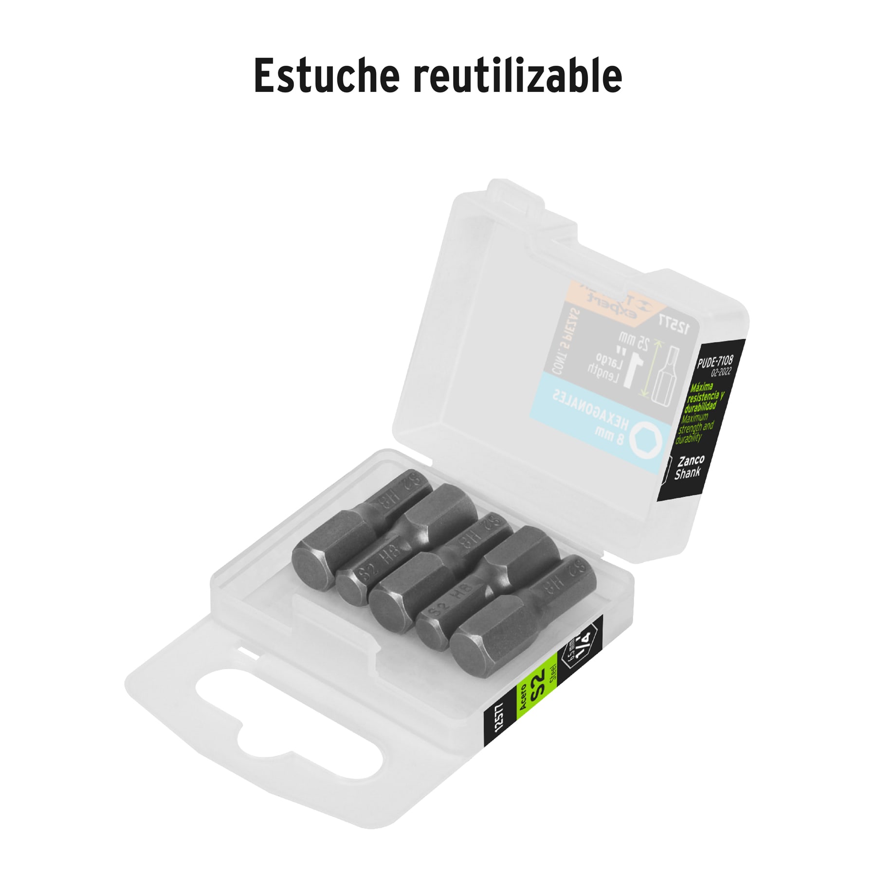 Estuche con 5 puntas hexagonales de 8 mm largo 1′, Expert