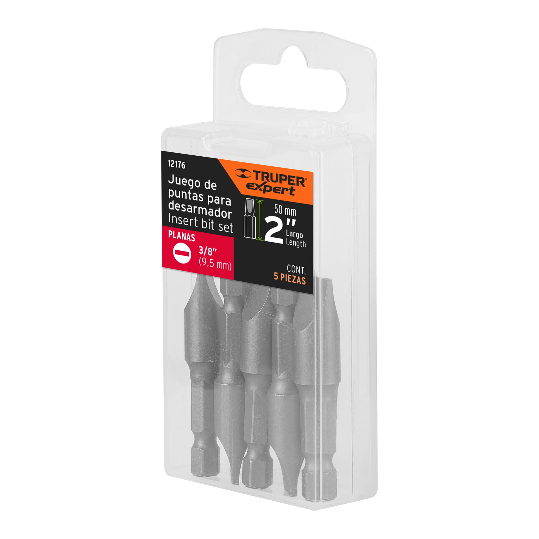 Estuche con 5 puntas planas de 3/8′ largo 2′, Truper Expert