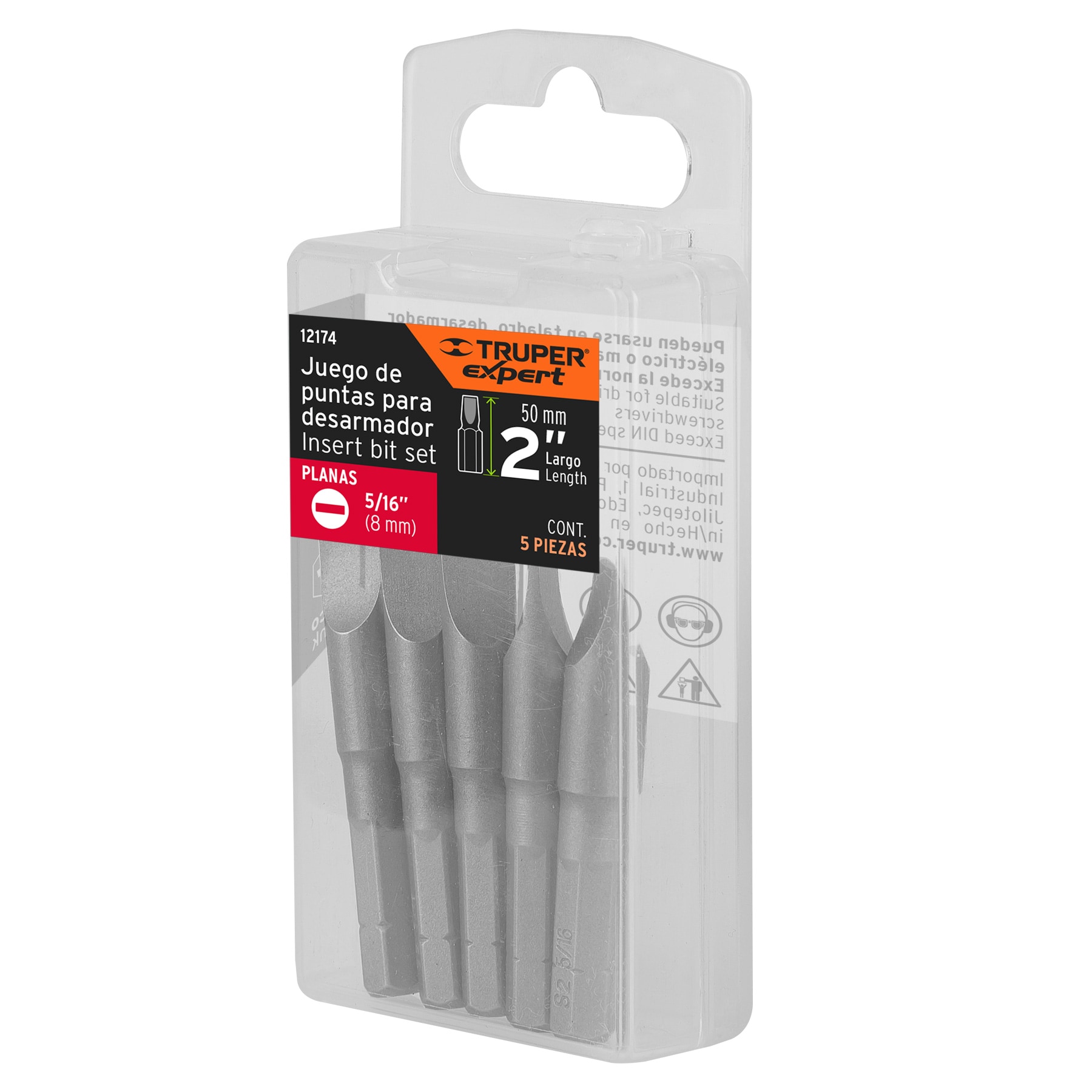 Estuche con 5 puntas planas de 5/16′ largo 2′, Truper Expert