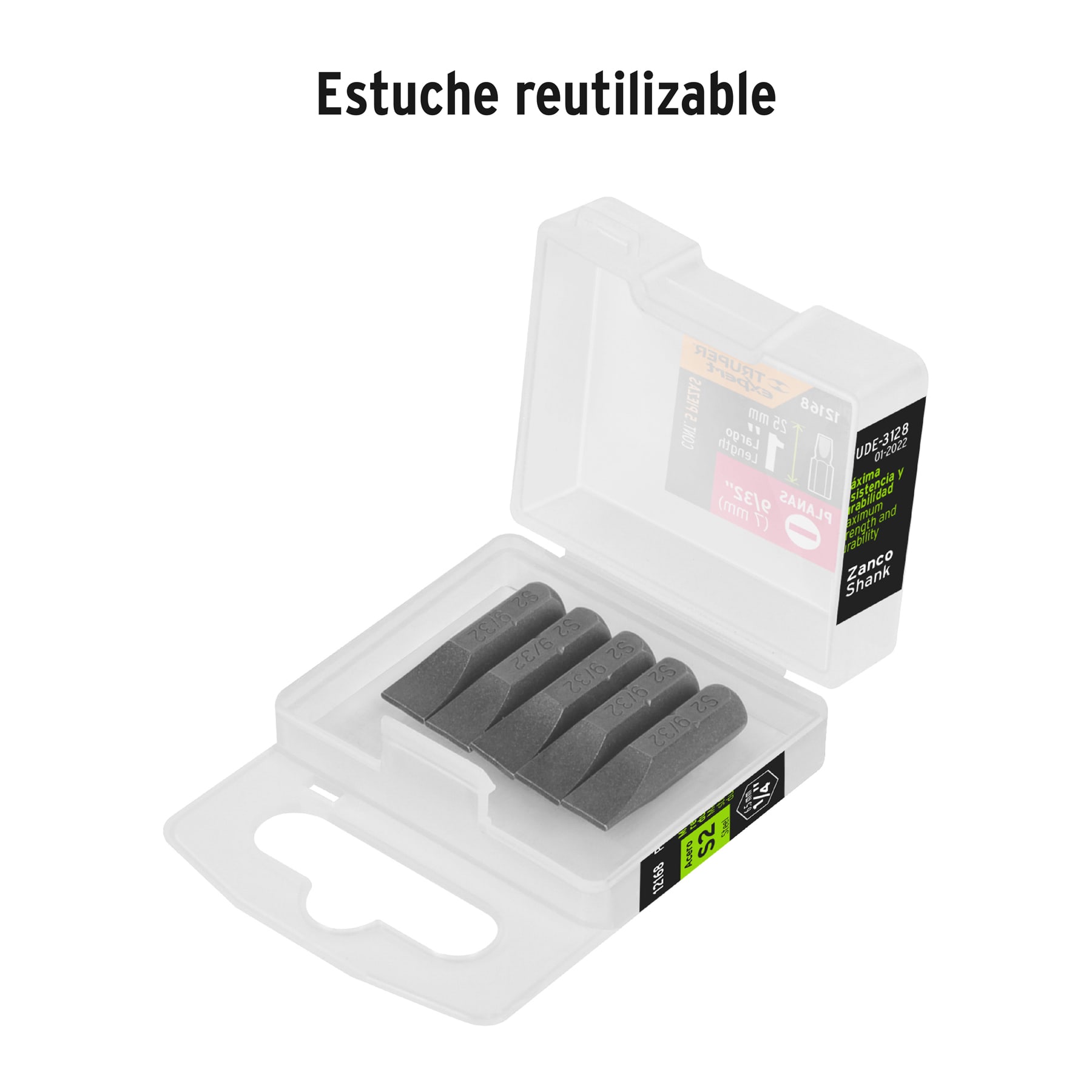 Estuche con 5 puntas planas de 9/32′ largo 1′, Truper Expert