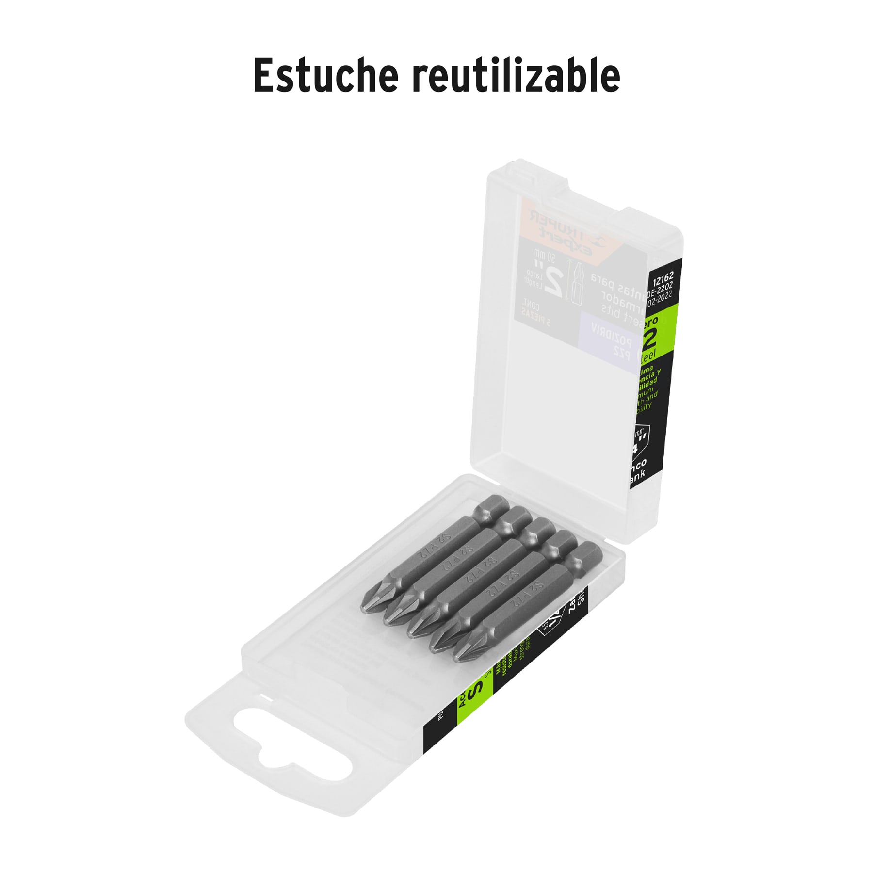 Estuche con 5 puntas pozidriv PZ2 largo 2′, Truper Expert