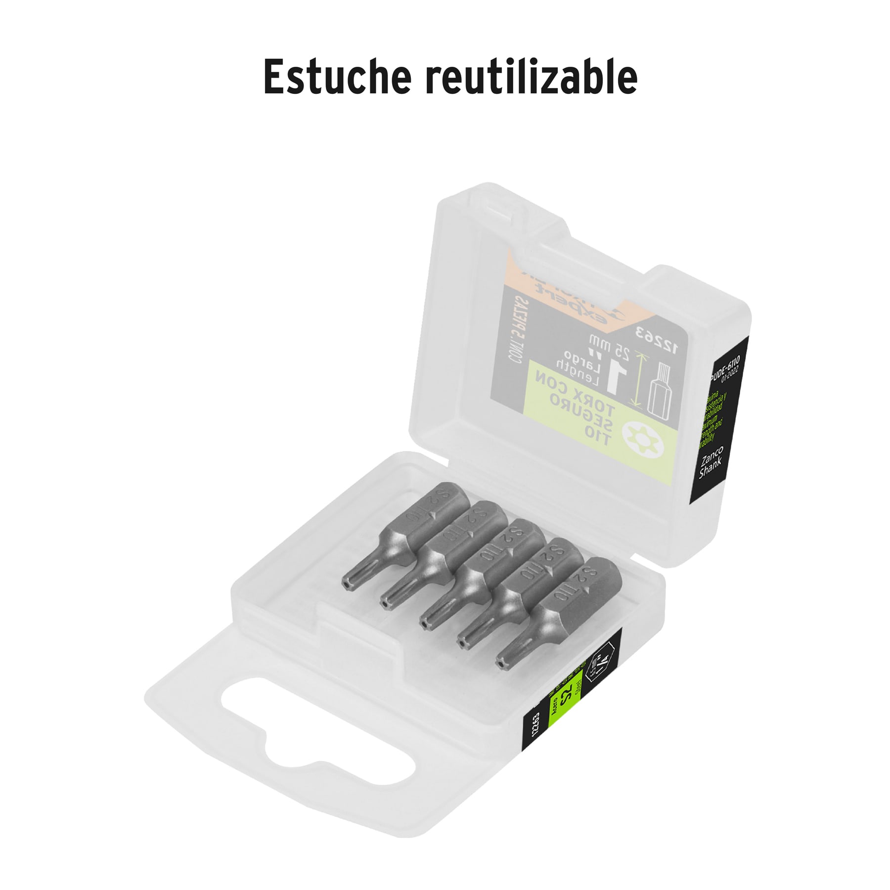 Estuche con 5 puntas torx T10 con seguro largo 1′, Expert